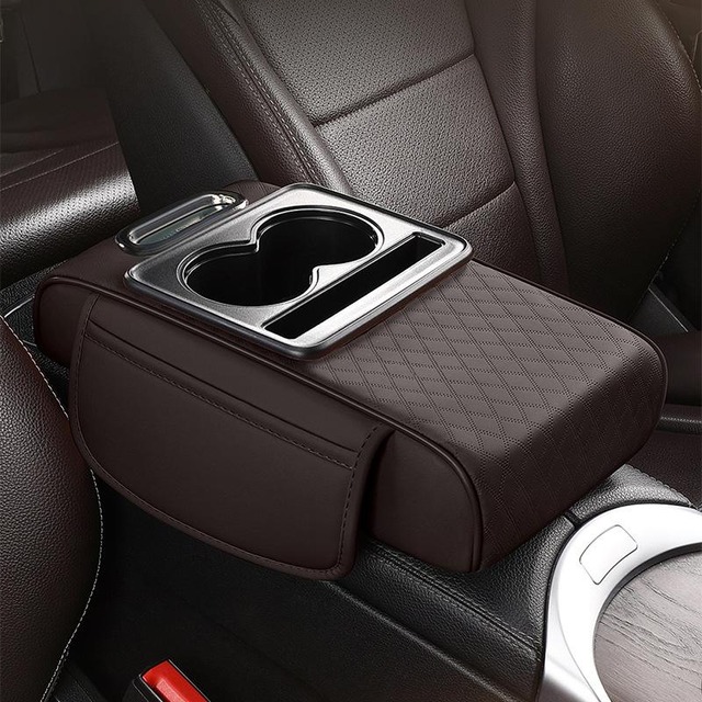 • 車用アームレスト 多機能 カップホルダー 収納ボックス 高さ調整パッド 車載ティッシュケース レザー 合皮 汎用 車内快適化 小物入れ ドリンクホルダー