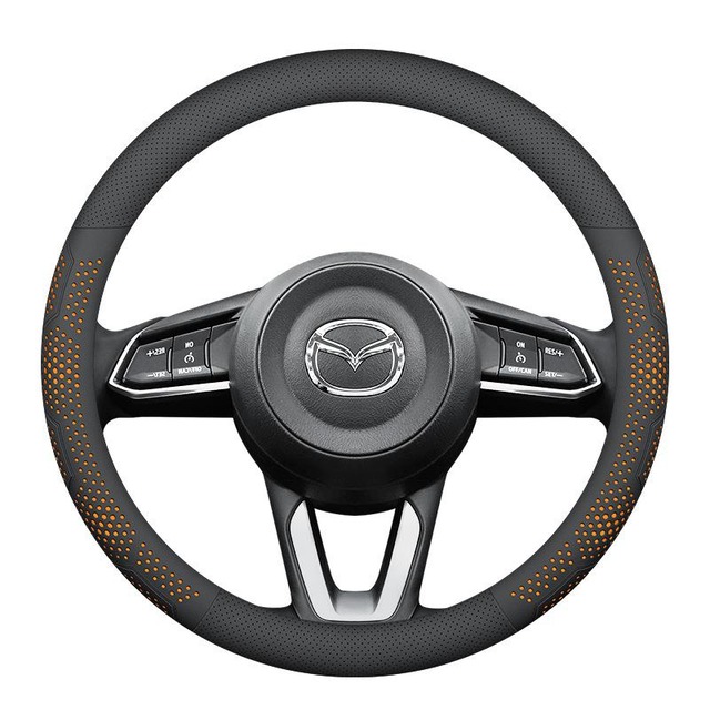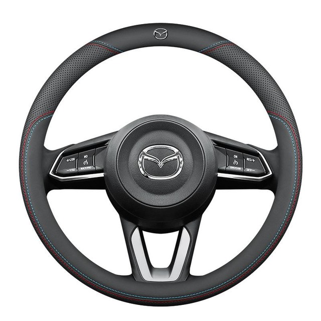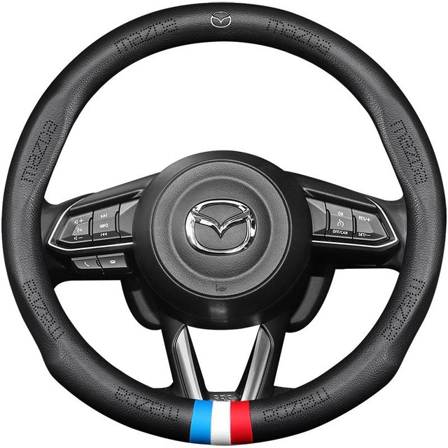 ハンドルカバー マツダ車用 CX-4 CX-5 マツダ6 マツダ3 アテンザ 本革レザー グリップ 高級感 滑り止め 汚れ防止 保護 快適運転 内装 ドレスアップ カーアクセサリー