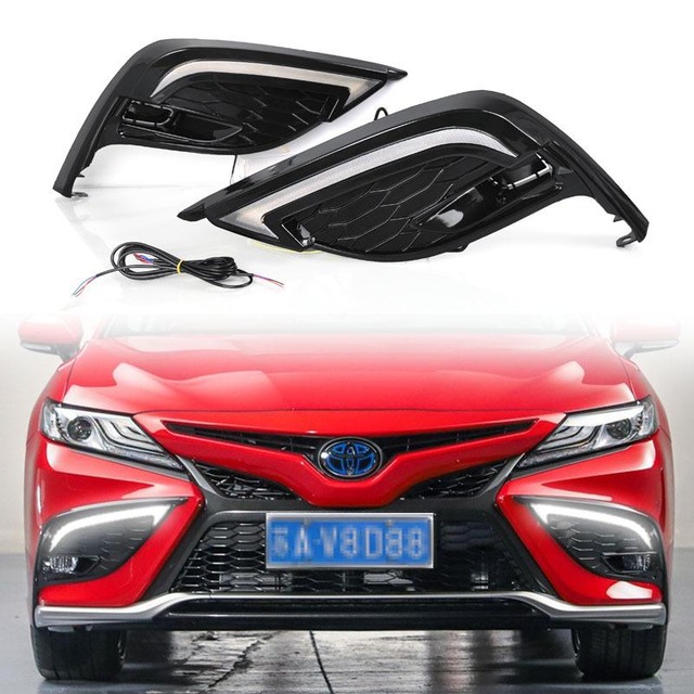 LEDデイライト トヨタ カムリ 9代目 21-23年式 スタイリッシュ スポーツグレード 牙型 流れるウインカー 三色 ABS樹脂 PC製 高輝度 長寿命 耐久性 ドレスアップ