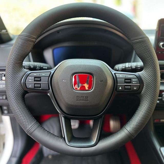 ハンドルカバー ホンダ車用 シビック アコード CR-V フィット ヴェゼル など対応 人工皮革 フェイクレザー 3Dエンボス スポーティ 丸型 オールシーズン 直径38cm ブラック レッド グレー ホワイト