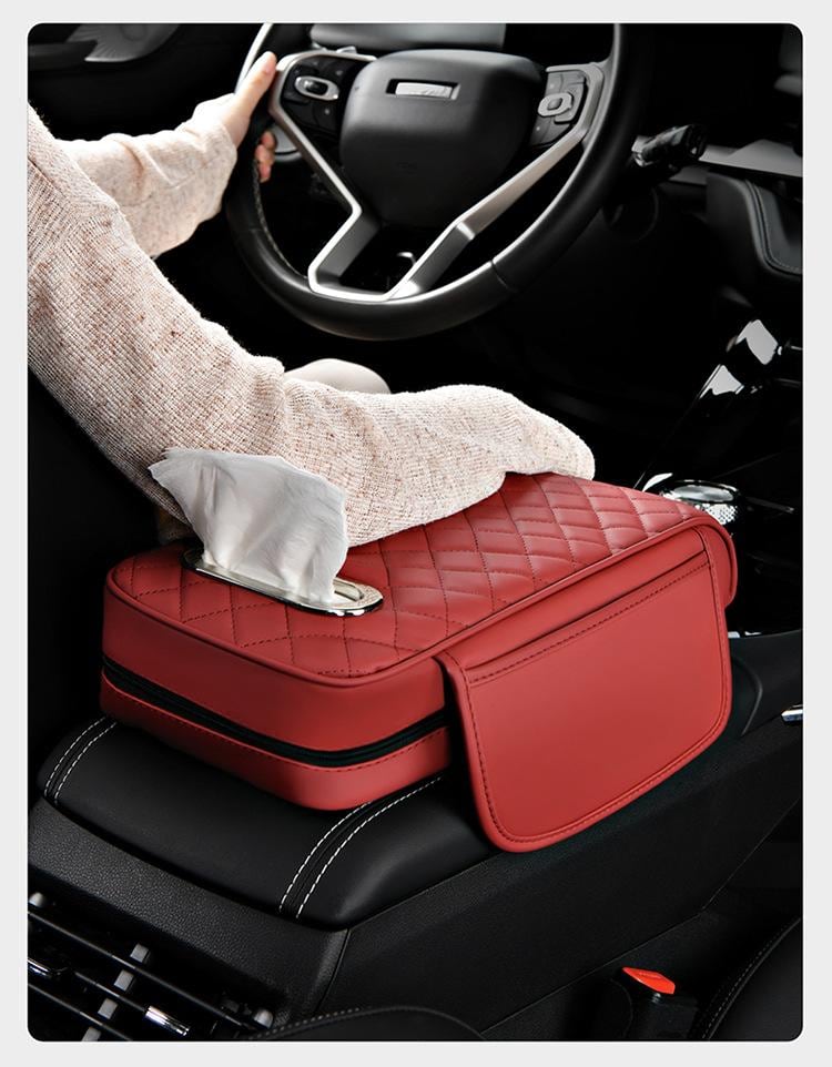 ["・素材: レザー","・対応車種: 汎用","・カラー展開: クラシックブラック、ボルカノレッド、モカブラウン、ベージュ、クラシックブラックレッド、ジェントルグレー、カイエンイエロー","・サイズ: 全長35cm、幅18.5cm、高さ7.5cm"]