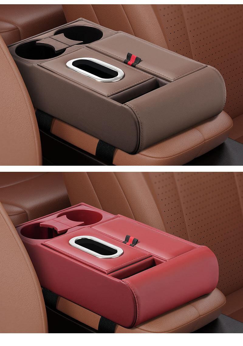 ・素材: レザー・使用場所: 座席中央・容量: 1000ml・カラー展開: ブラック, レッド, コーヒー, ベージュ・機能: 防水, 耐圧・対応車種: 汎用・置物タイプ: 収納ボックス・設置方法: 座席取付型