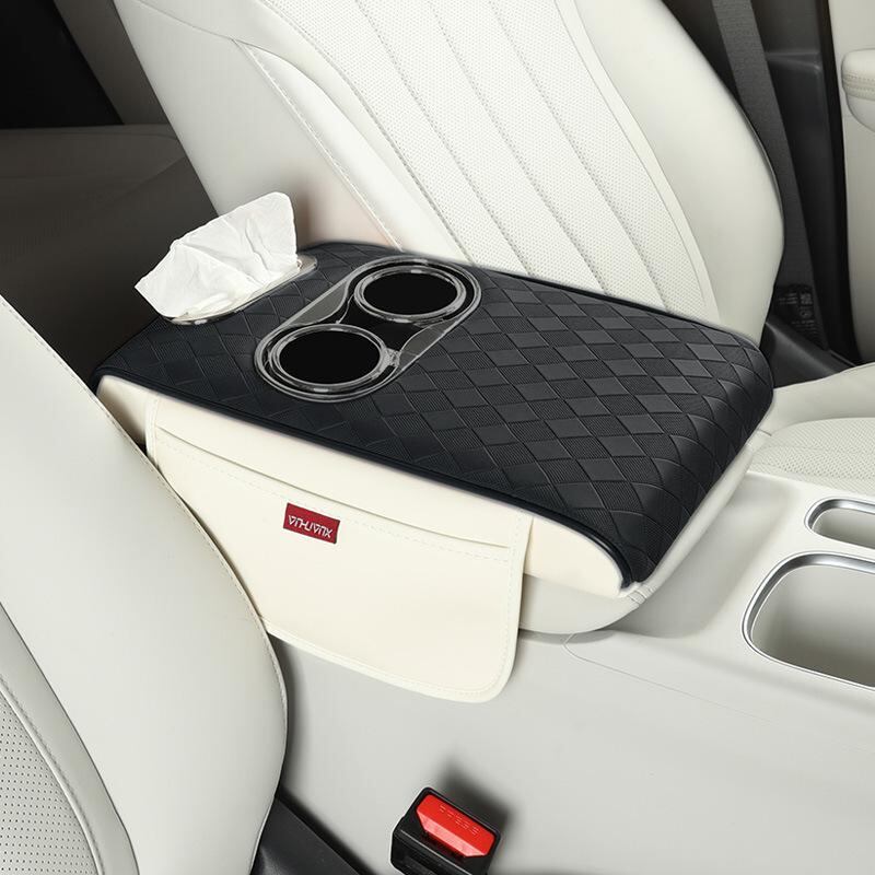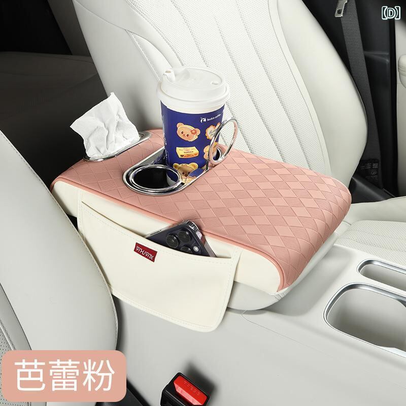 車載 汎用 多機能 カップホルダー ティッシュケース カー アームレストクッション 肘置き 高さ調整パッド レザー 合皮 収納ボックス 小物入れ 高級感 センターコンソール 快適ドライブ 簡単設置 | lanui