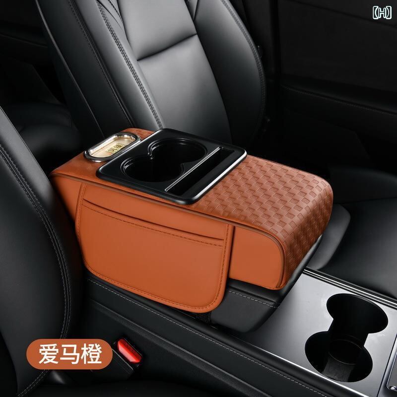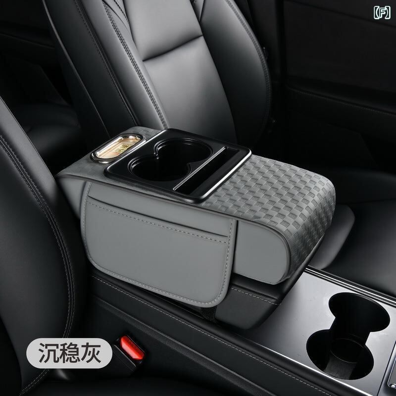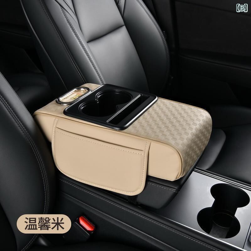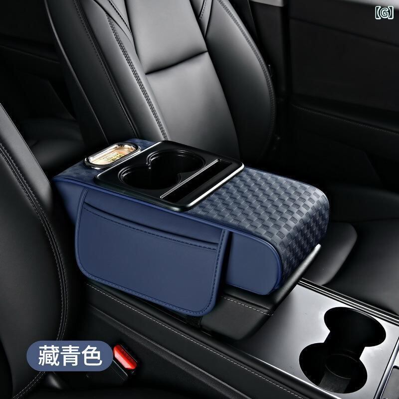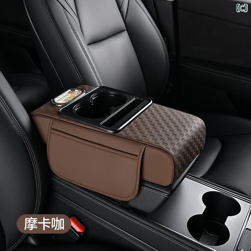 車載用アームレストクッション 多機能 汎用 高さ調節 カップ ドリンクホルダー 収納ボックス 小物入れ ティッシュケース PUレザー 車内アクセサリー アイボリー ブラック モカブラウン レッド グレー ネイビー | lanui