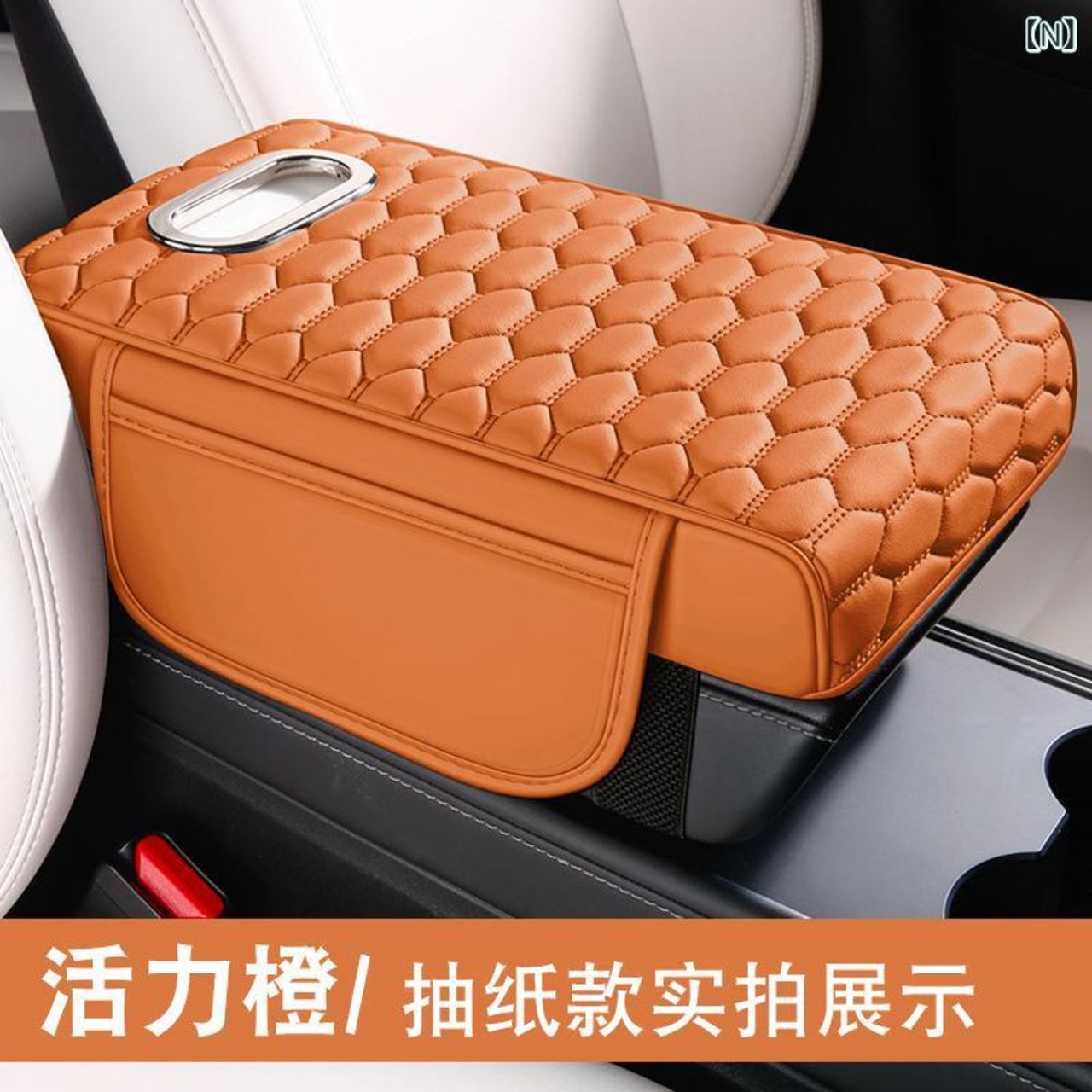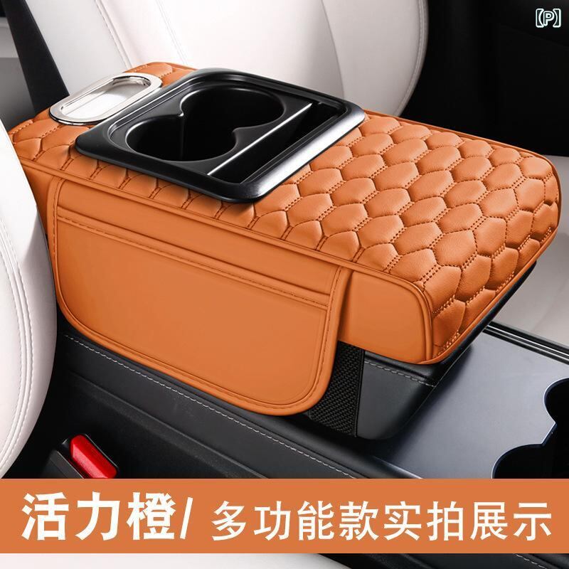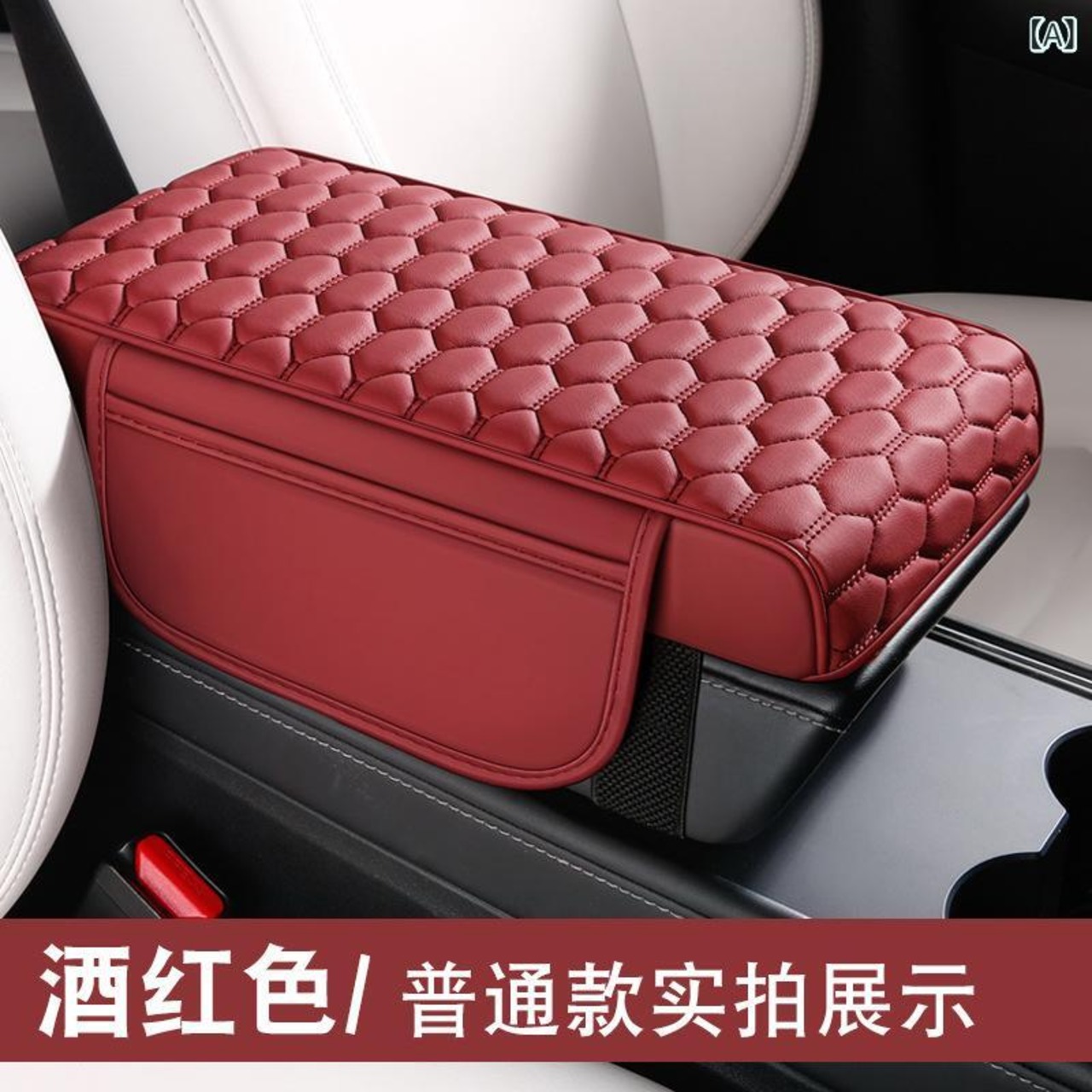 ["・素材: 革","・適用車種: 汎用タイプ","・カラー展開: ワインレッド, ミステリーブラック, ビジネスグレー, エネルギッシュオレンジ, 魅力カーキ, ウォームベージュ","・サイズ: 約34cm×21cm×5cm","・特徴: 中央高級アームレスト、快適な肘置き、自動車内装、4in1"]