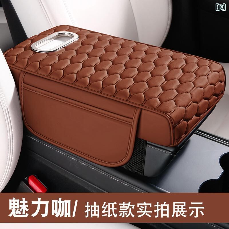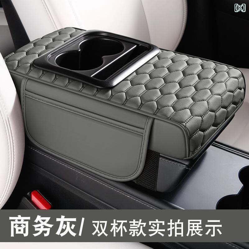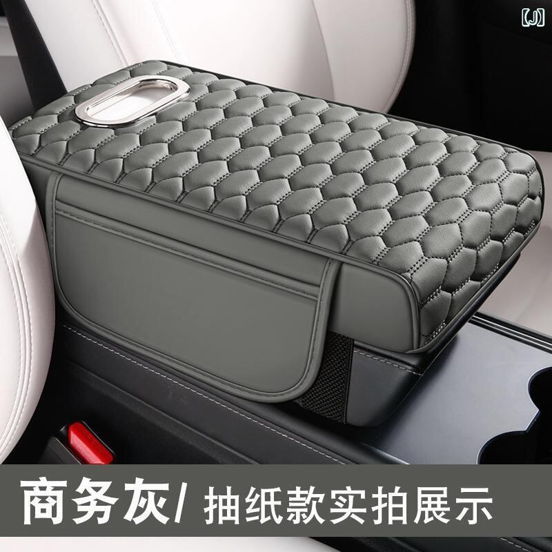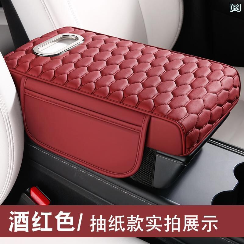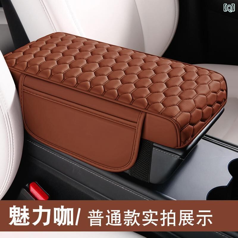 ["・素材: 革","・適用車種: 汎用タイプ","・カラー展開: ワインレッド, ミステリーブラック, ビジネスグレー, エネルギッシュオレンジ, 魅力カーキ, ウォームベージュ","・サイズ: 約34cm×21cm×5cm","・特徴: 中央高級アームレスト、快適な肘置き、自動車内装、4in1"]