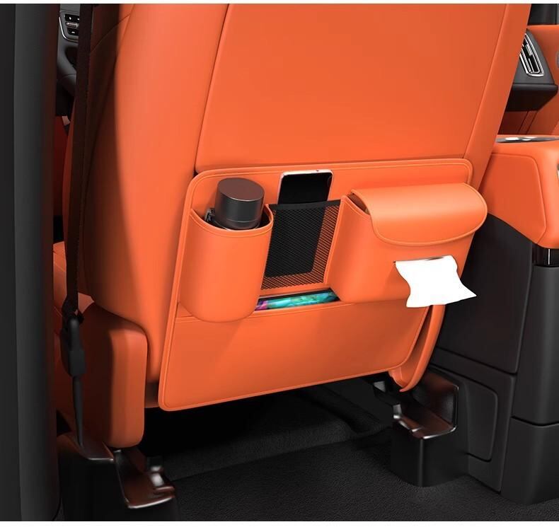 車のシート背面に取り付けられる多機能収納ボックスです。