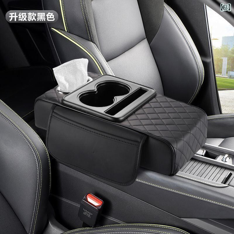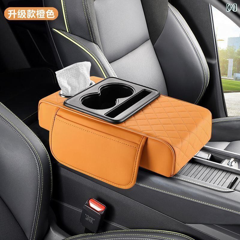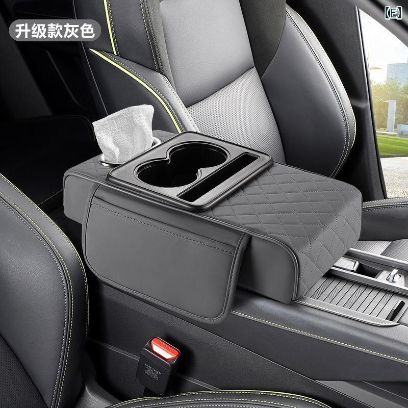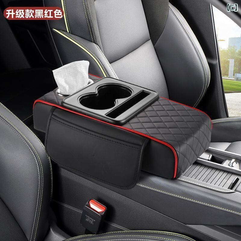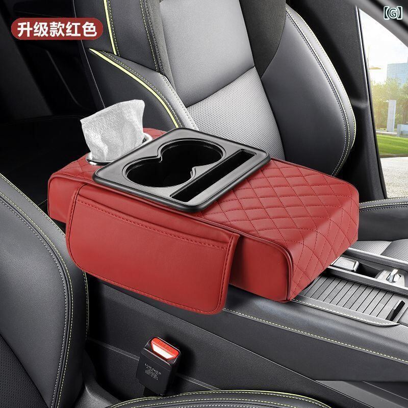 車内アクセサリー 4WAY 多機能 アームレストクッション 高さ調節 肘置き ティッシュボックス 収納ボックス 小物入れ 格子柄 ドライブ 快適 便利グッズ | lanui