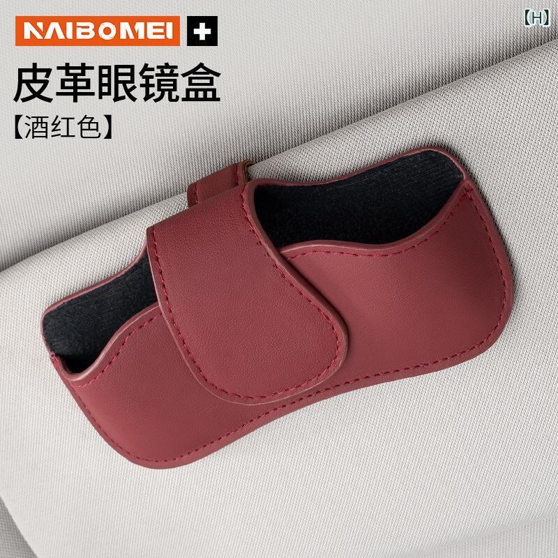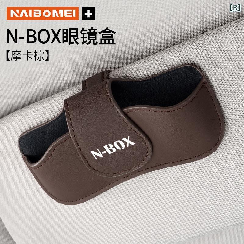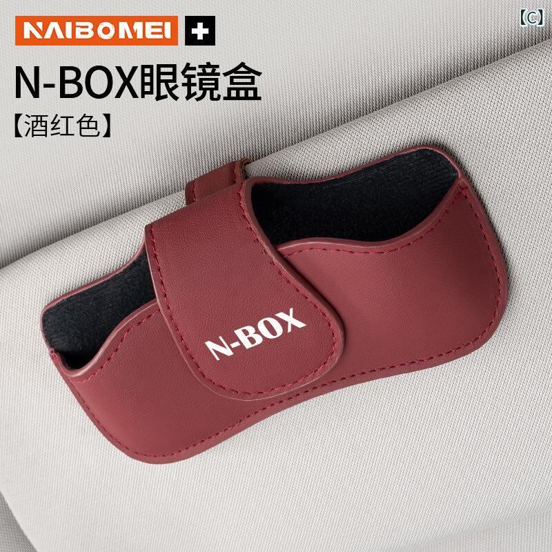 カー用品 ホンダ N-BOX 専用 車用 サンバイザー メガネホルダー サングラスケース PUレザー 丸型 収納 クリップ 小物入れ ブラック ブラウン ワインレッド 高級感 ドレスアップ | lanui