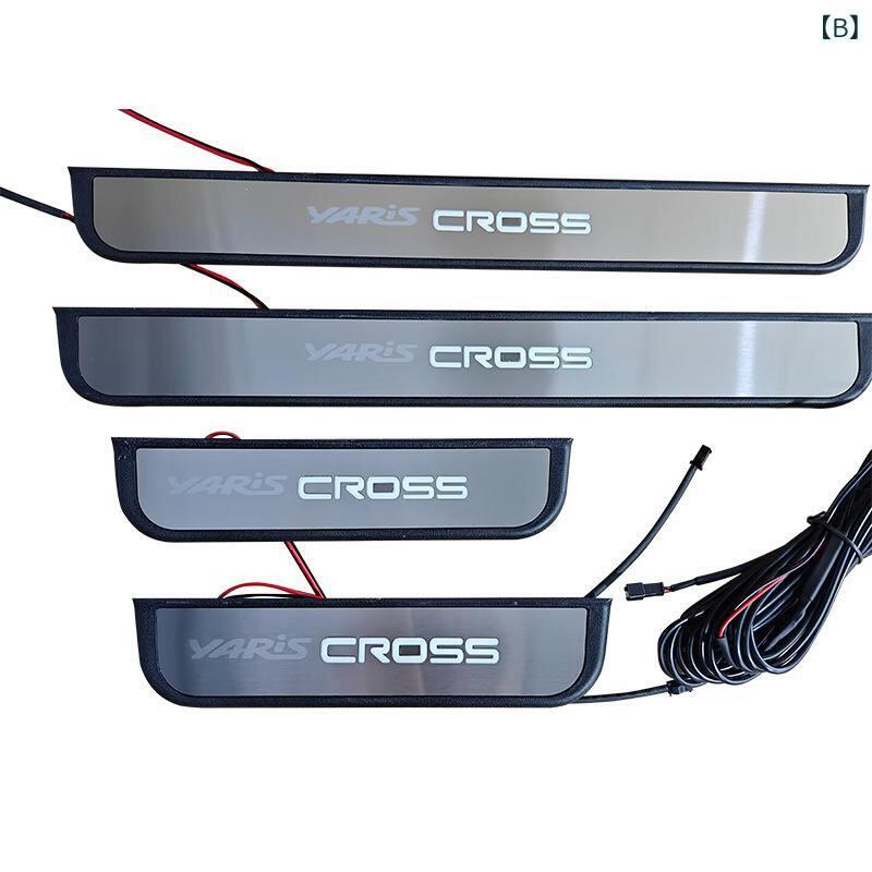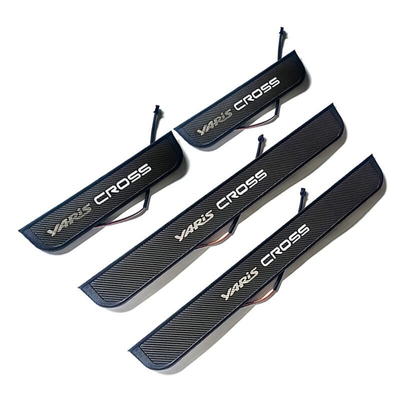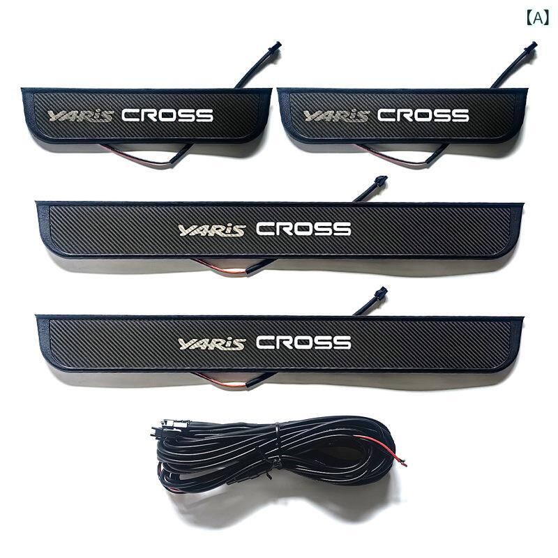 スカッフプレート 23-24年モデル トヨタ ヤリスクロス用 LED発光 サイドステップ 傷つき防止 ドアプロテクター ABS樹脂製 カーボン調 メッキ ドレスアップ カスタム アクセサリー | lanui