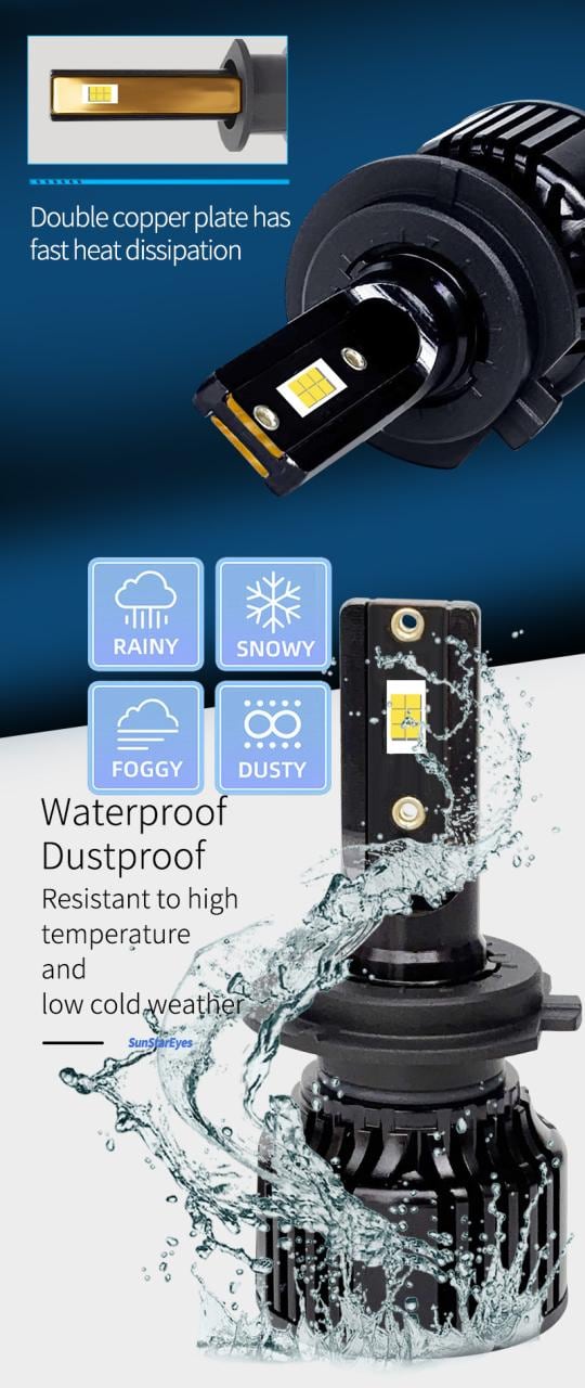 このLEDヘッドライトバルブは、高品質な航空機用アルミと銅板を組み合わせた素材で作られており、優れた耐久性と放熱性を実現しています。