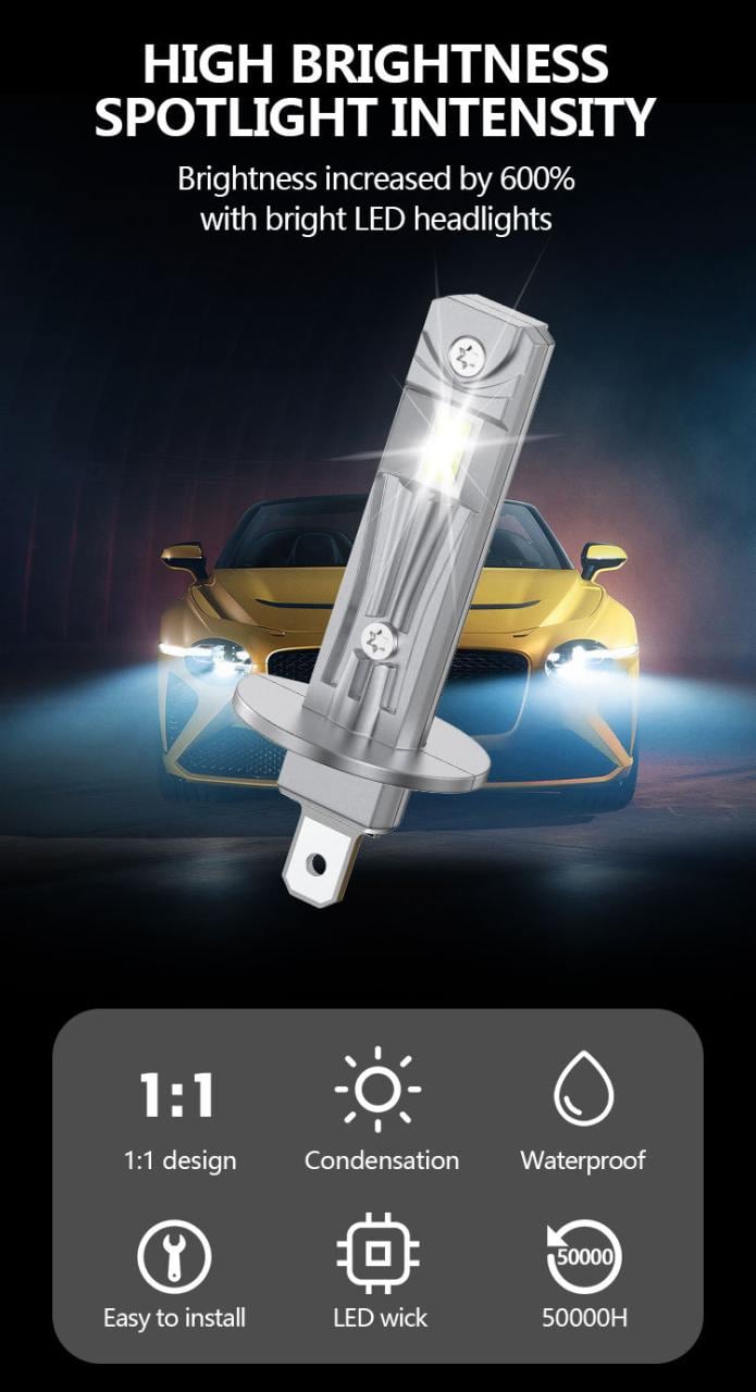 幅広い車種に対応する汎用タイプのLEDヘッドライトです。