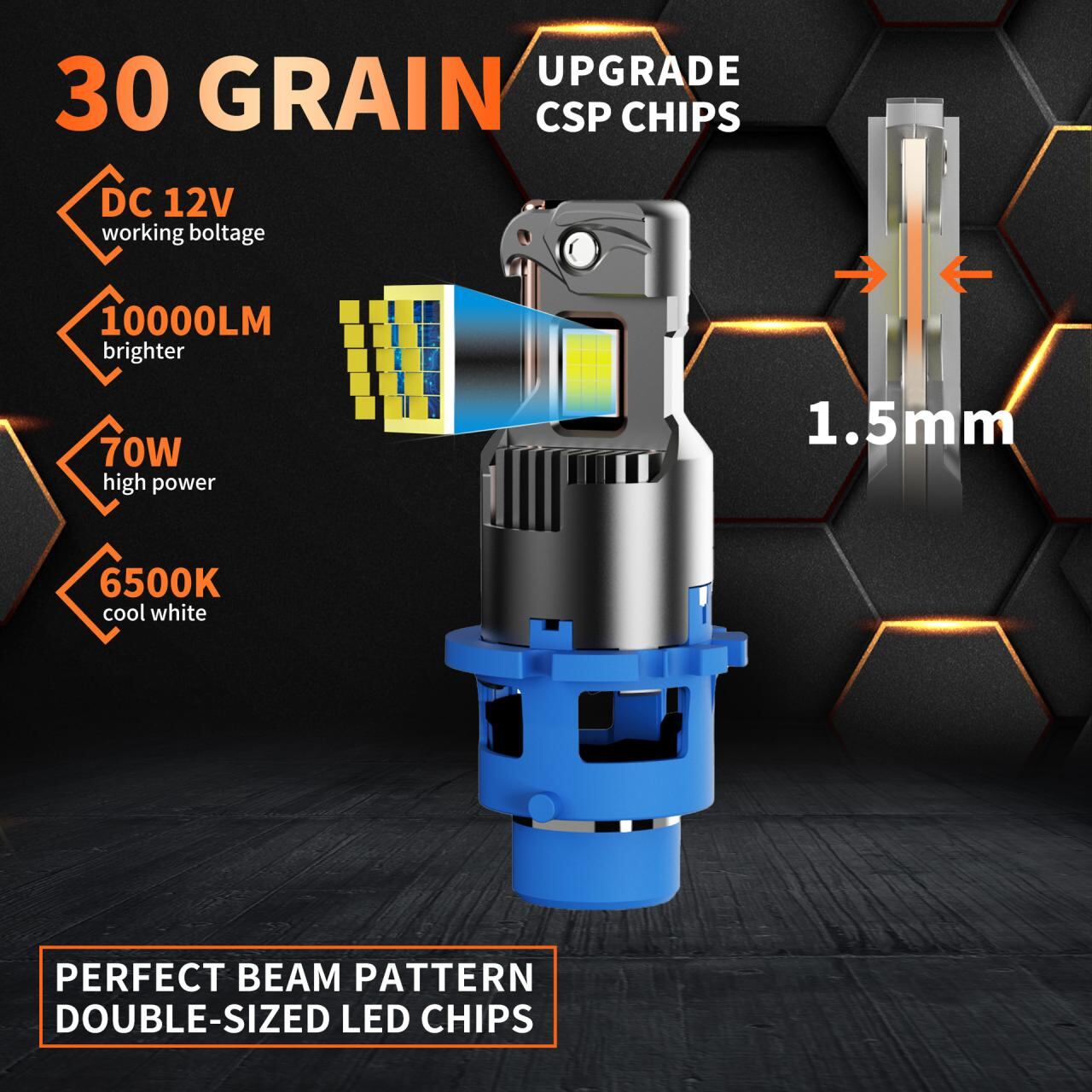 おすすめポイント: 明るい6000ルーメンで夜間の運転を強力にサポート 耐久性のあるアルミニウム製、IP68等級で悪天候にも強い 約50000時間の長寿命でメンテナンスの手間を軽減 AT/オートマチック車に幅広く対応する汎用設計