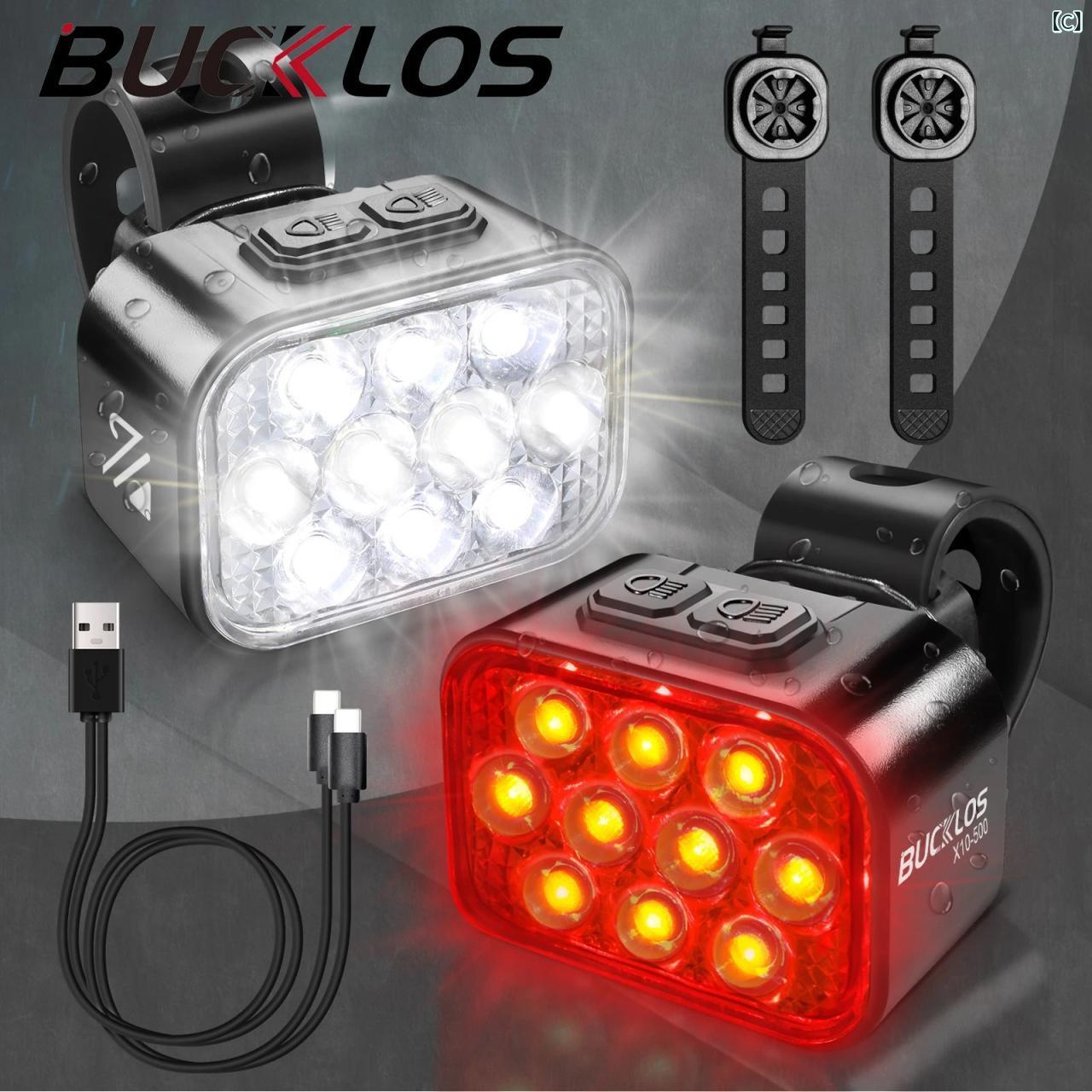 自転車ライト サイクルライト 10LED IP65防水 USB Type-C急速充電 フロントライト テールライト 前後セット 高輝度 夜間走行 ナイトライド 安全対策 通勤 通学 スポーツバイク ロードバイク 簡単装着 | lanui