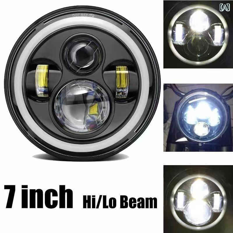 LEDヘッドライト ラングラー 汎用 7インチ 丸型 オフロード車 SUV カスタム ドレスアップ 4灯 イエロー ブルー発光 高輝度 ダイキャストアルミ製 12V 50V対応 IP68防水防塵 長寿命 | lanui