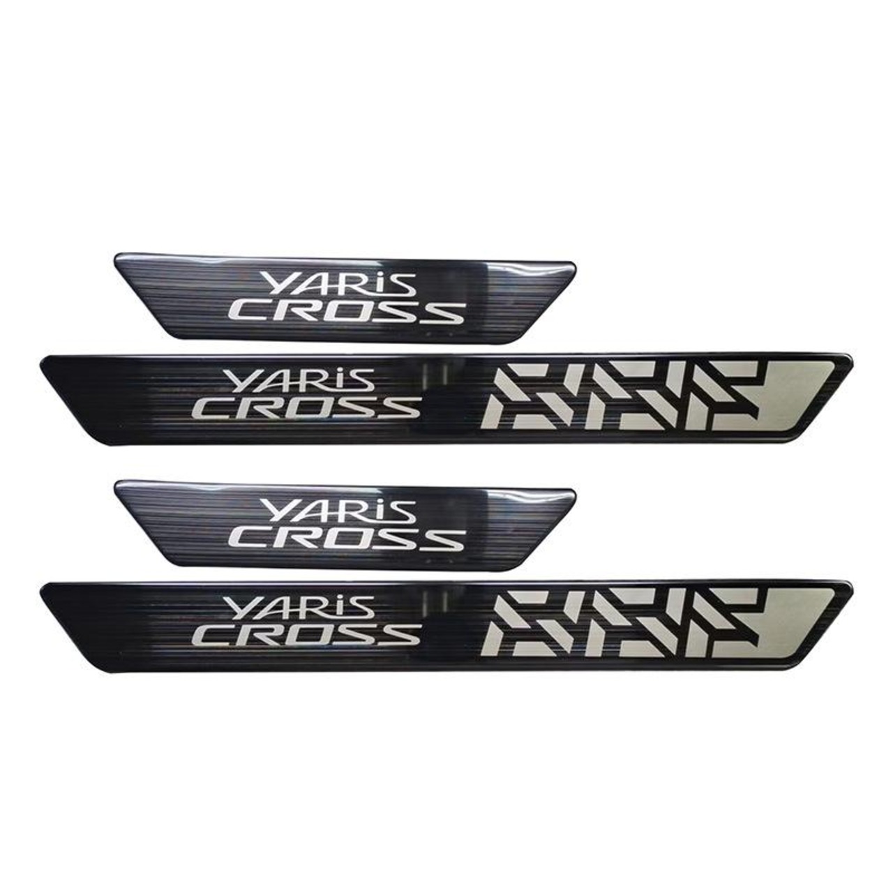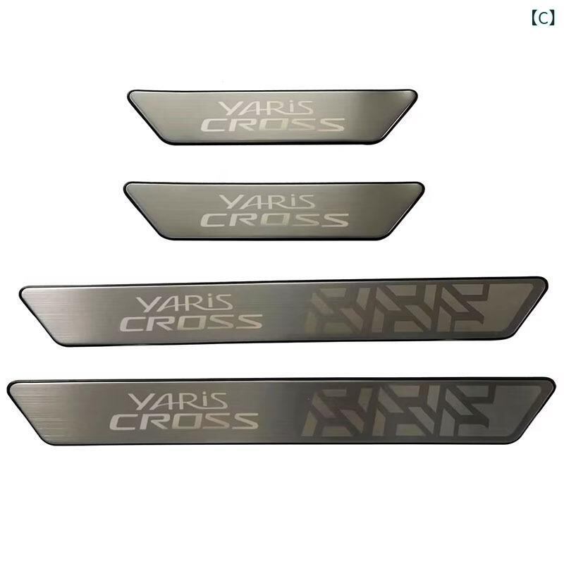 カー用品 トヨタ ヤリスクロス ドアシルプロテクター エントランスモール スカッフプレート ステップガード ステンレス製 傷防止 保護 ドレスアップ カスタムパーツ シルバー ブラック | lanui