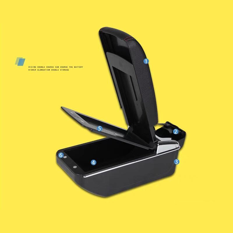 product_description: features: この多機能アームレストボックスは、愛車のコンソールにぴったりフィットする専車専用設計です。ダブルレイヤー構造で収納スペースを確保し、伸縮式で快適なアームサポートを提供します。高品質なプラスチック素材を使用し、約2kgのしっかりとした作りで安定感があります。内装のアクセントになるステッチカラーで、車内をスタイリッシュに演出します。
