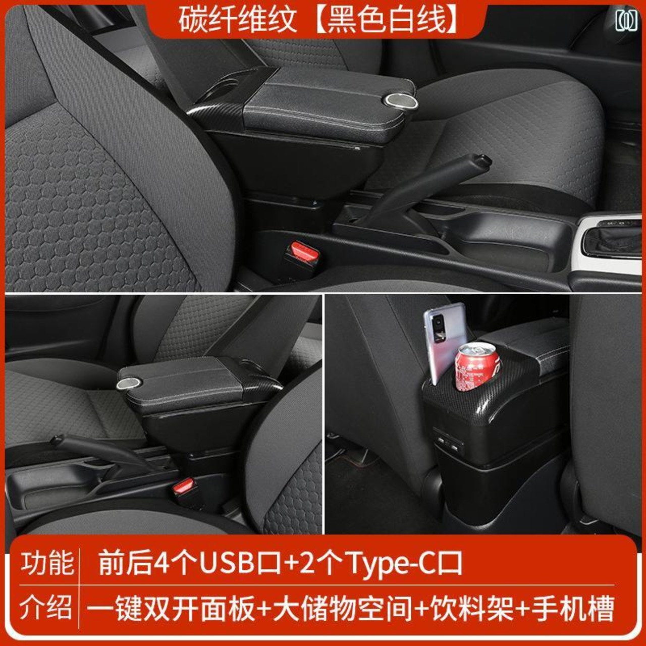 車載アクセサリー トヨタ ヤリス 2008年-2011年モデル 専用 プラスチック製 アームレストボックス センターコンソール 肘掛け 収納 穴あけ不要 取り付け簡単 純正タイプ ブラック カーボン調 | lanui