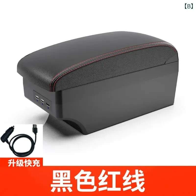 アームレストボックス ヤリス 専用設計 センターコンソール 収納 二層式 大容量 多機能 7ポートUSB 急速充電対応 樹脂製 内装パーツ 車載アクセサリー 本体ブラック ブラックステッチ レッドステッチ ホワイトステッチ 快適ドライブ | lanui