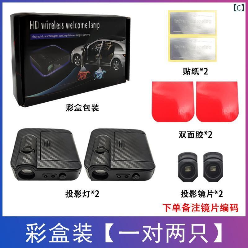 カー用品 自動車用 ウェルカムライト ドアランプ LED プロジェクターライト ロゴ 足元灯 ワイヤレス 配線不要 センサー式 赤外線感知 汎用 ABS樹脂 カーボン柄 内装 ドレスアップ カスタムパーツ | lanui