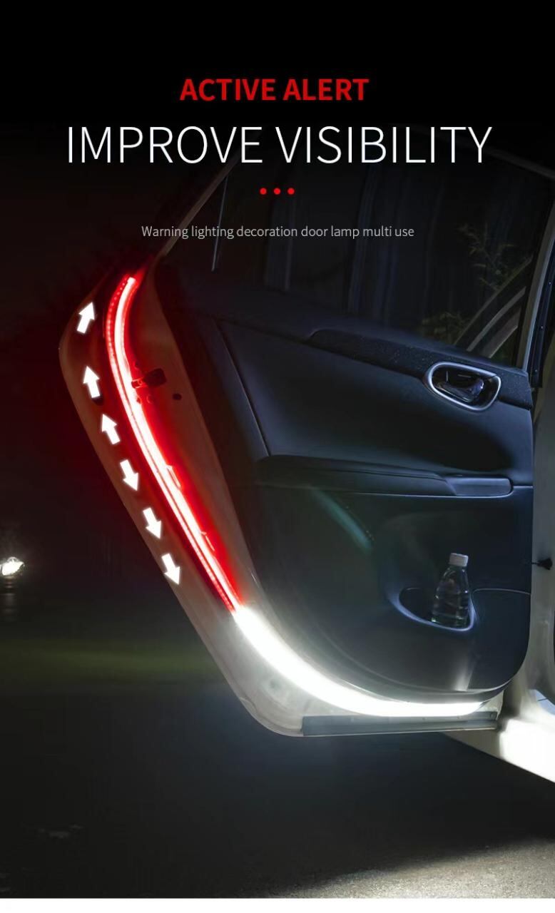 【商品特徴・説明文】: このドアエッジライトは、夜間のドア開閉時に後方からの視認性を高め、安全運転をサポートします。車のサイドビューにスタイリッシュなアクセントを加え、存在感を際立たせます。耐久性に優れたシリコン素材と高輝度LEDライトビーズを使用しており、長期間ご愛用いただけます。お好みに合わせて選べる2種類のダイナミックな点灯モードをご用意いたしました。取り付けは簡単で、多くの車種に対応する汎用タイプです。