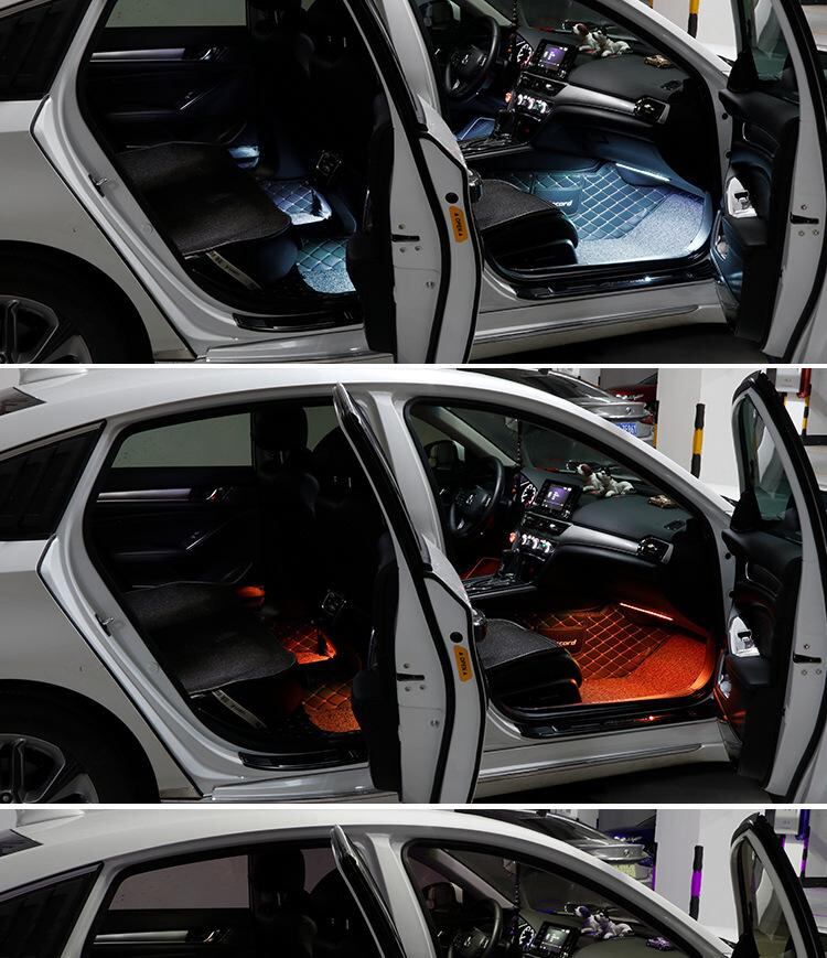 カーLEDライト 車内 足元 フットライト USB シガーソケット アンビエントライト 7色 RGB 多彩 音楽連動 サウンドセンサー グラデーション点滅 リモコン式 ドレスアップ カスタム 汎用 | lanui