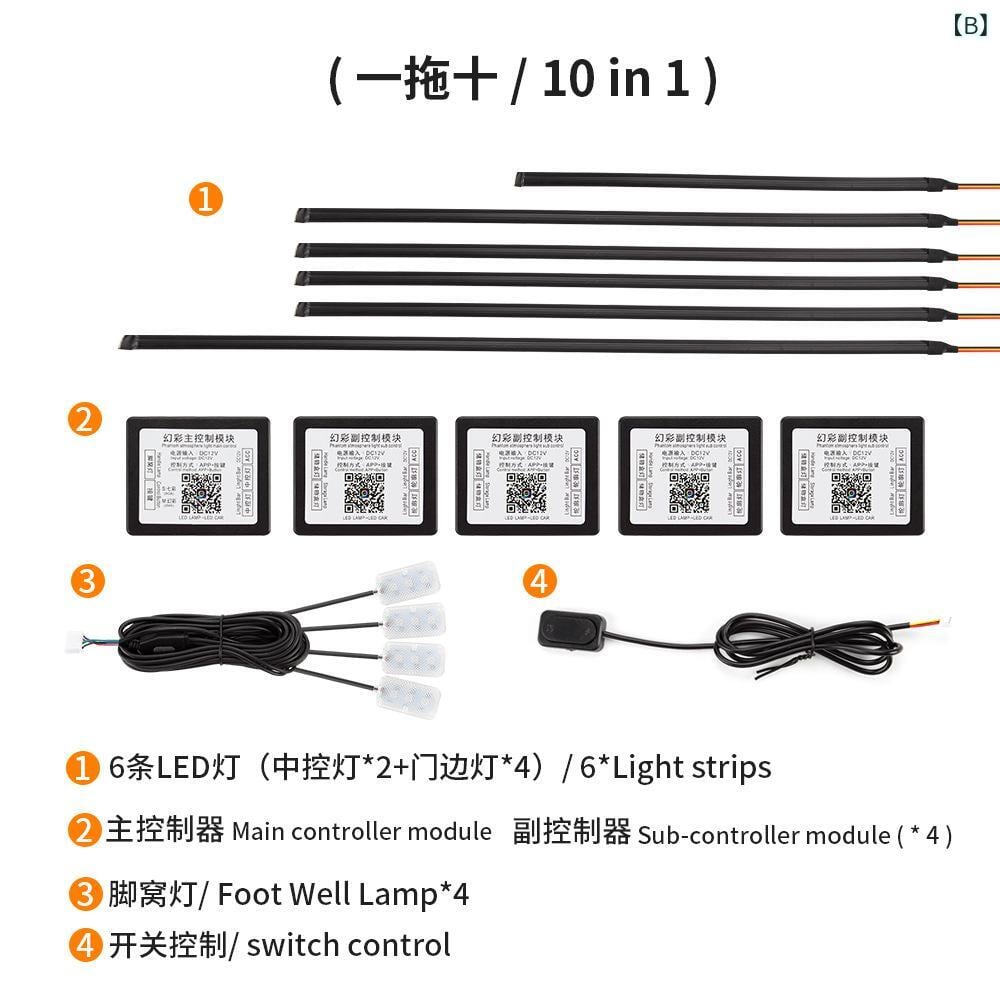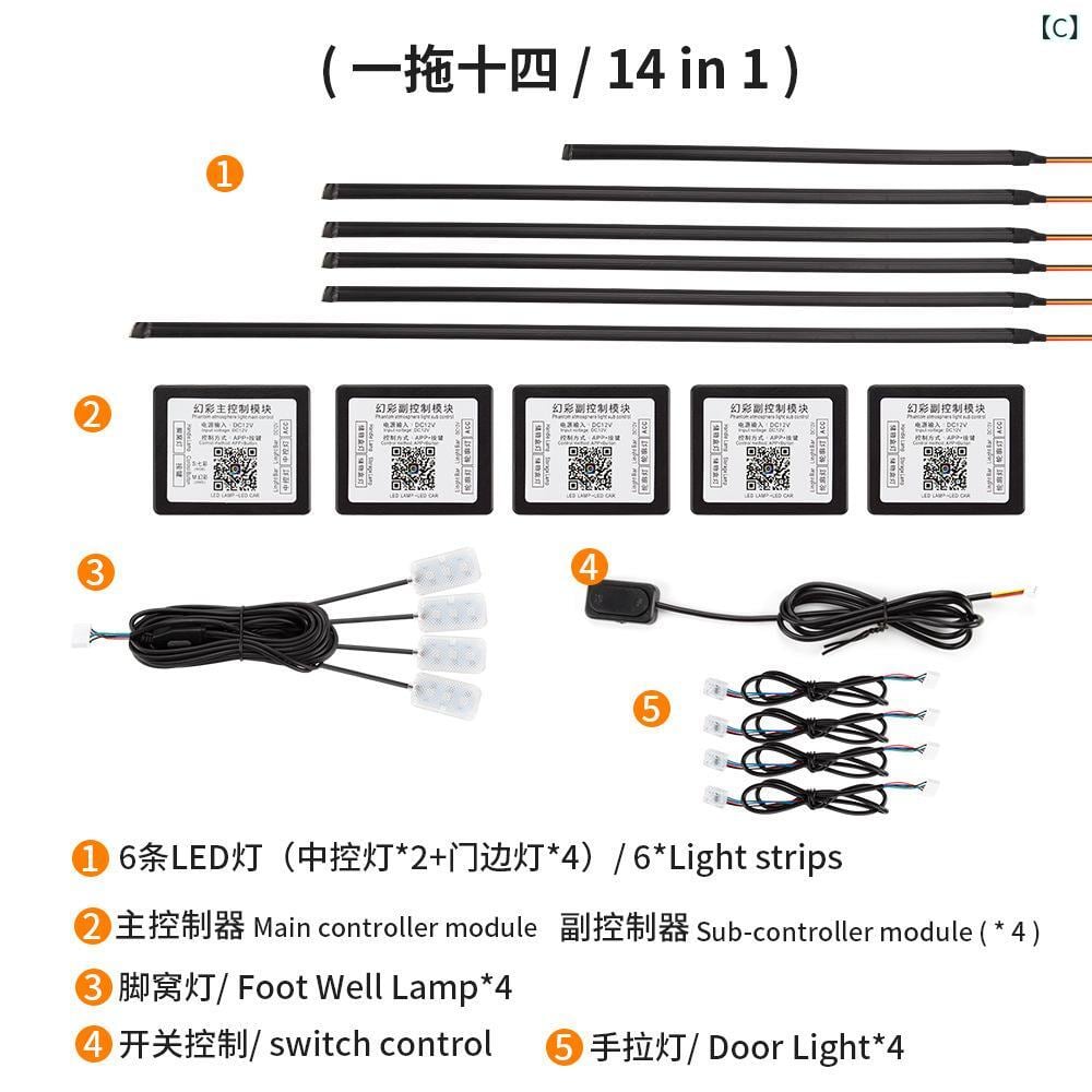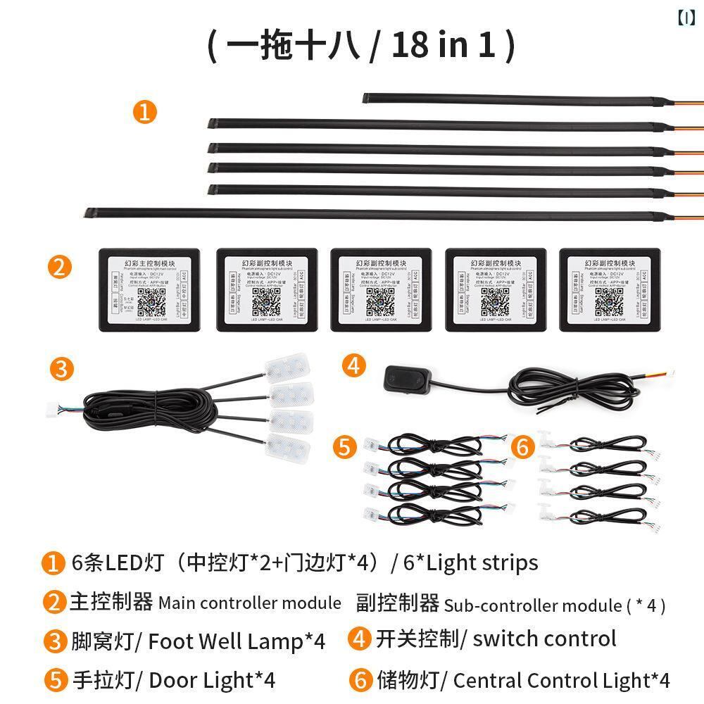 車載アンビエントライト 隠し型 LED フローライト 18点セット ダイナミック RGB マルチカラー 256色 アクリル 汎用 車内照明 間接照明 イルミネーション ドレスアップ カスタムパーツ 車内装飾 | lanui