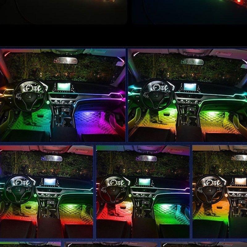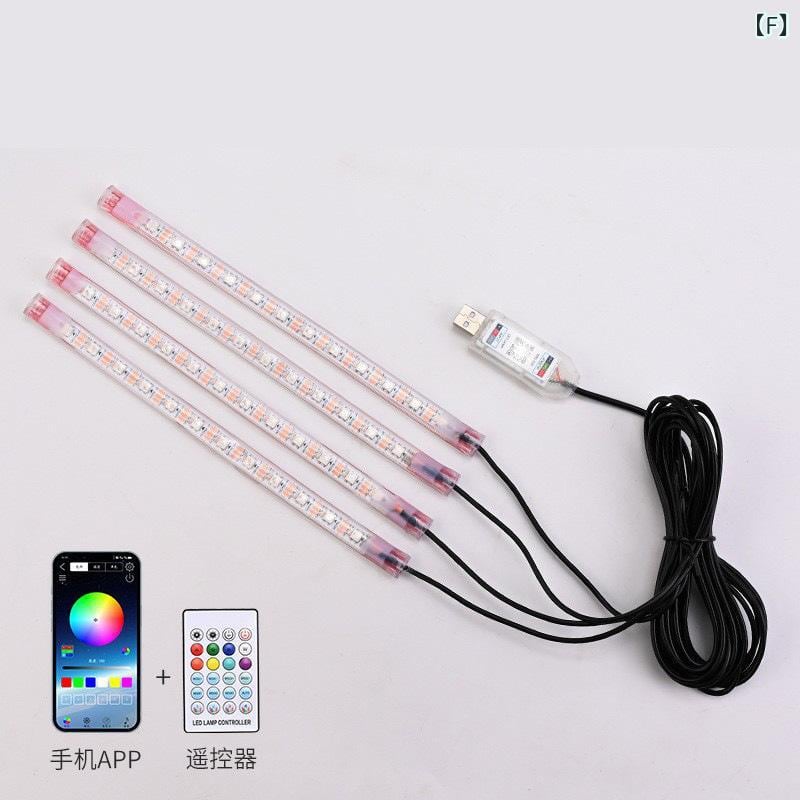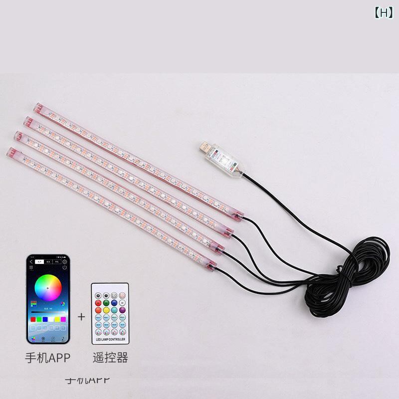 自動車用 アンビエントライト 足元灯 流れる光 グラデーション LED RGBマルチカラー 車内装飾 アプリ制御 音声 サウンドセンサー リモコン USB給電 汎用 ドレスアップ イルミネーション | lanui