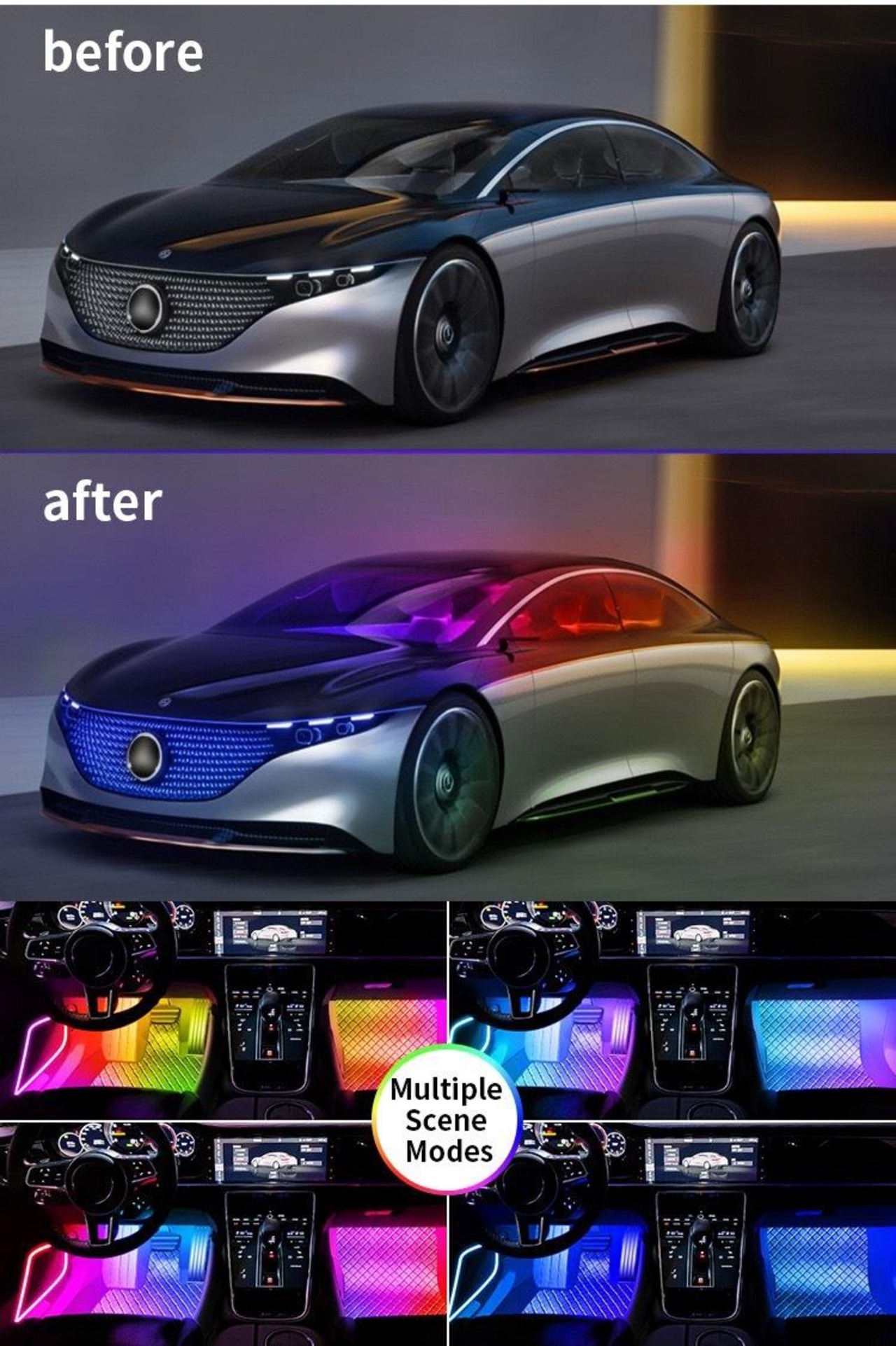 アプリまたはリモコンで操作可能で、車内を幻想的なマルチカラーで彩ります。