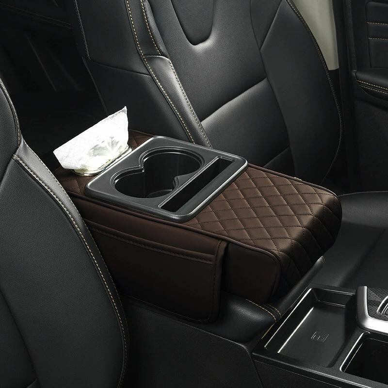 車載アームレスト 肘掛け 多機能 高さ調節 クッション パッド ティッシュケース ドリンクホルダー 収納ポケット 小物入れ PUレザー 汎用 ブラック グレー ブラウン 車内整理 運転サポート 快適ドライブ | lanui