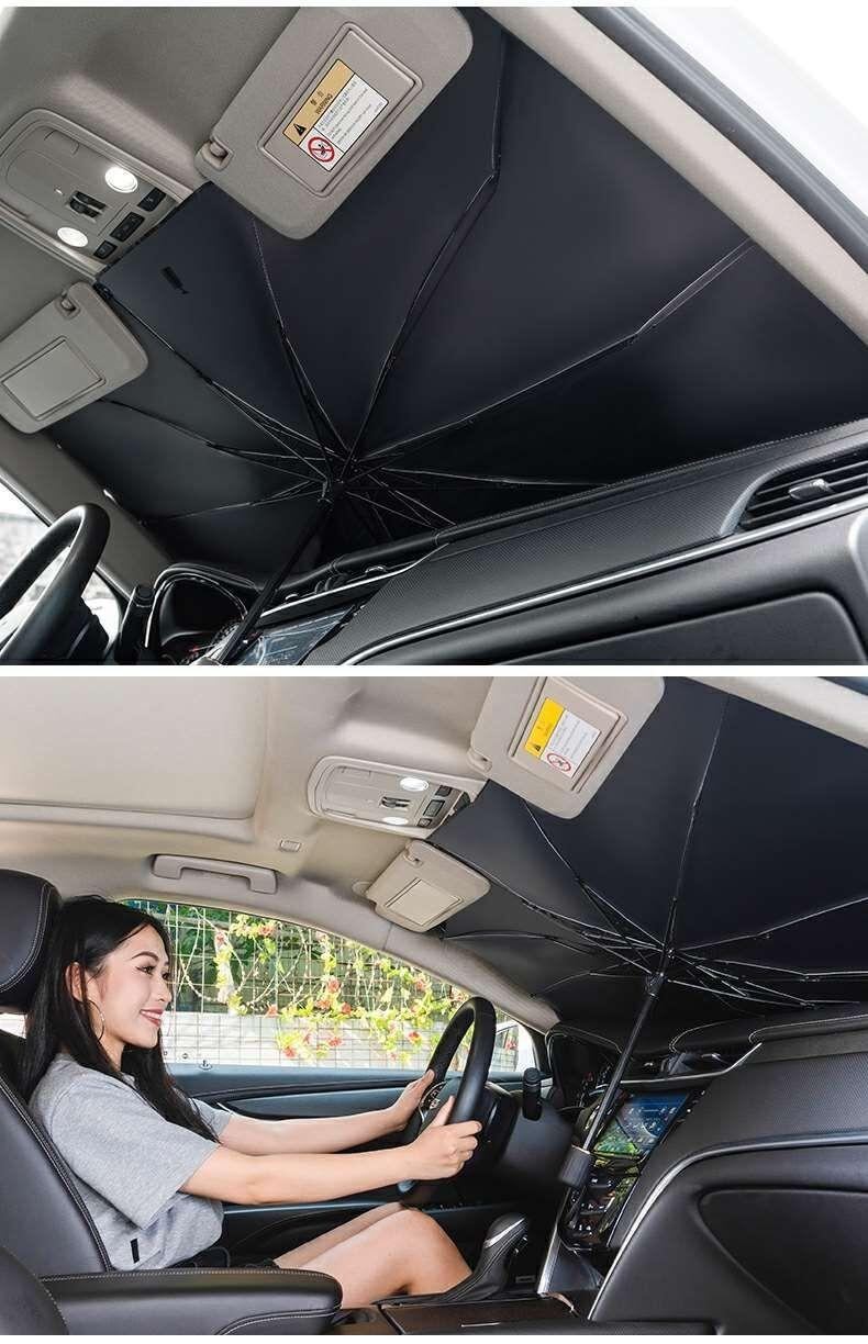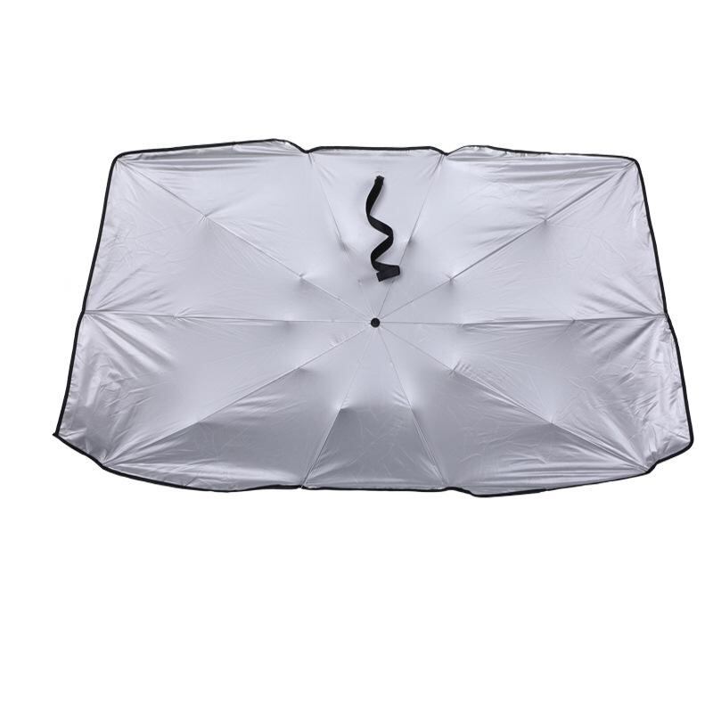 カーサンシェード 傘型 折りたたみ式 フロントガラス用 遮光 UVカット 断熱 遮熱 日よけ 日除け 車中泊 駐車 軽自動車 SUV 汎用 簡単取付 チタンシルバー 厚手 コンパクト収納 伸縮式 | lanui
