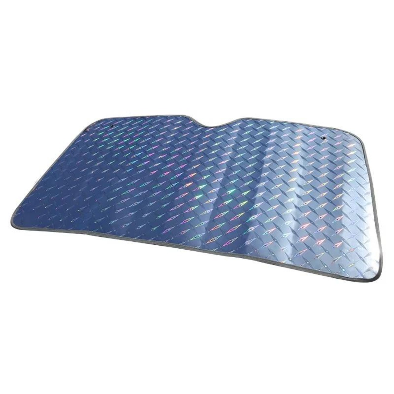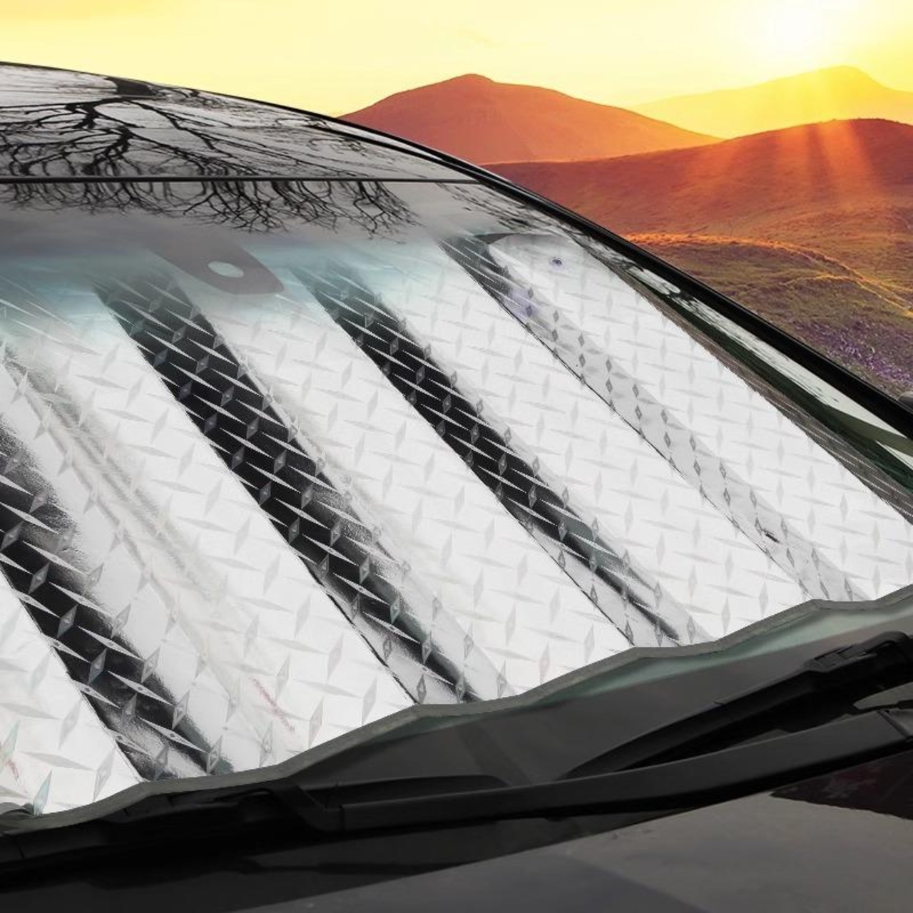 アルミ蒸着フィルム製で、夏の強い日差しから車内を守り、温度上昇を抑えます。
