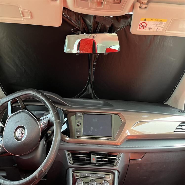直射日光を遮り、車内の温度上昇を抑えるフロントガラス用サンシェードです。