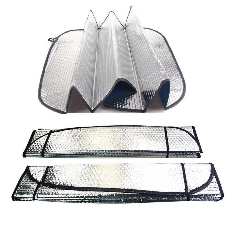 車用サンシェード 汎用 車 フロントガラス用 日差し対策 夏用 UVカット 完全遮光 車内温度上昇抑制 強反射 アルミフィルム ポータブル コンパクト 吸盤式 シルバー シンプルデザイン | lanui