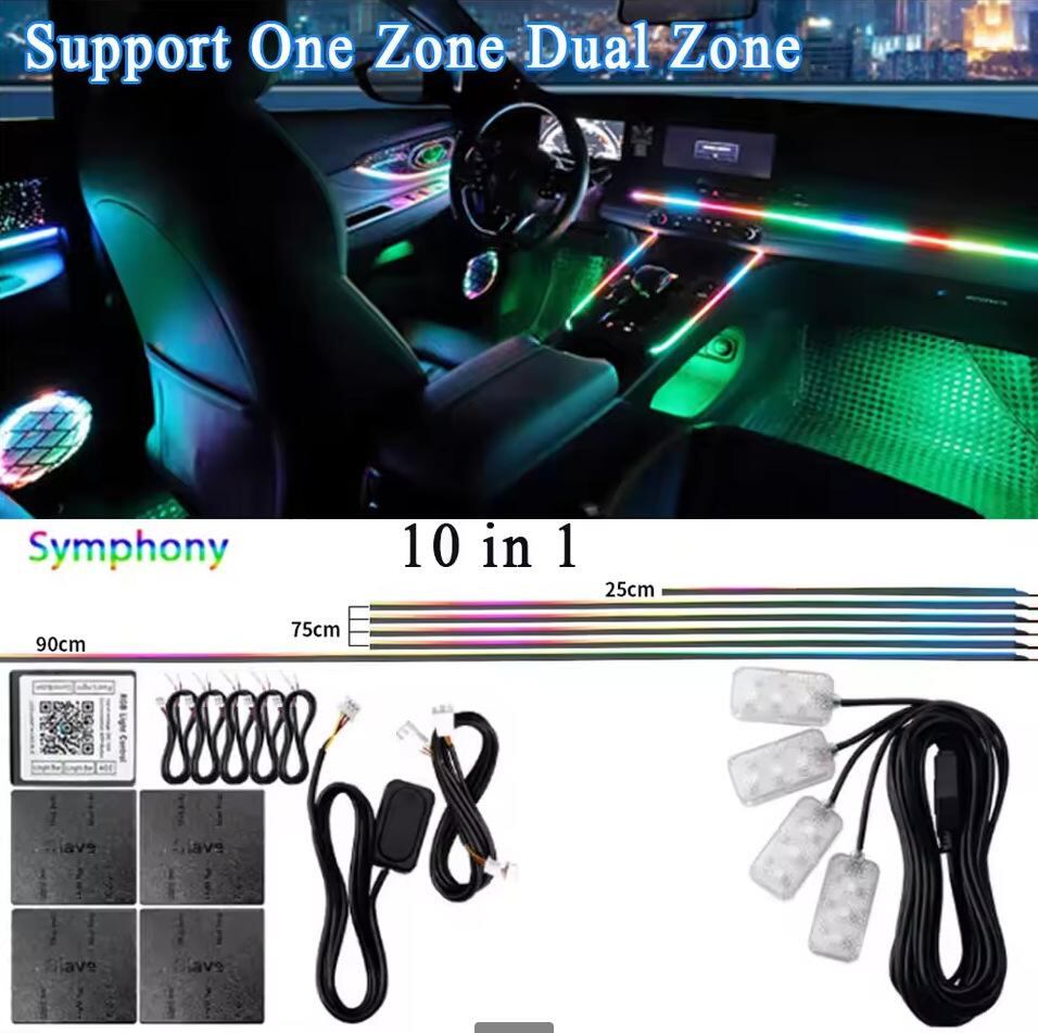 カー用品 車載用LEDアンビエントライト 流れる光 18in1 ダイナミック RGB 256色 幻彩グラデーション 車内イルミネーション 隠しタイプ 汎用 アクリル素材 12V ムードライト | lanui