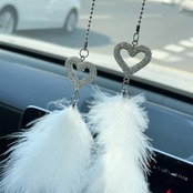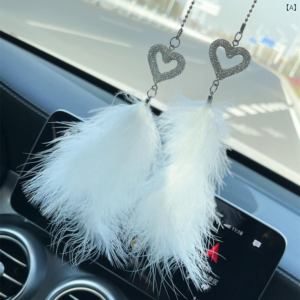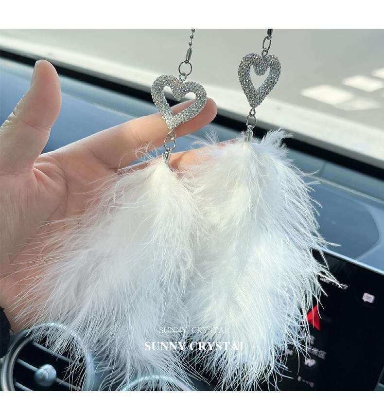 キラキラ輝くストーンと優雅なフェザーが美しい、モダンなデザインの車用ハンギングオーナメントです。