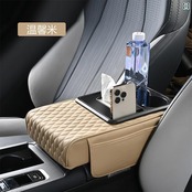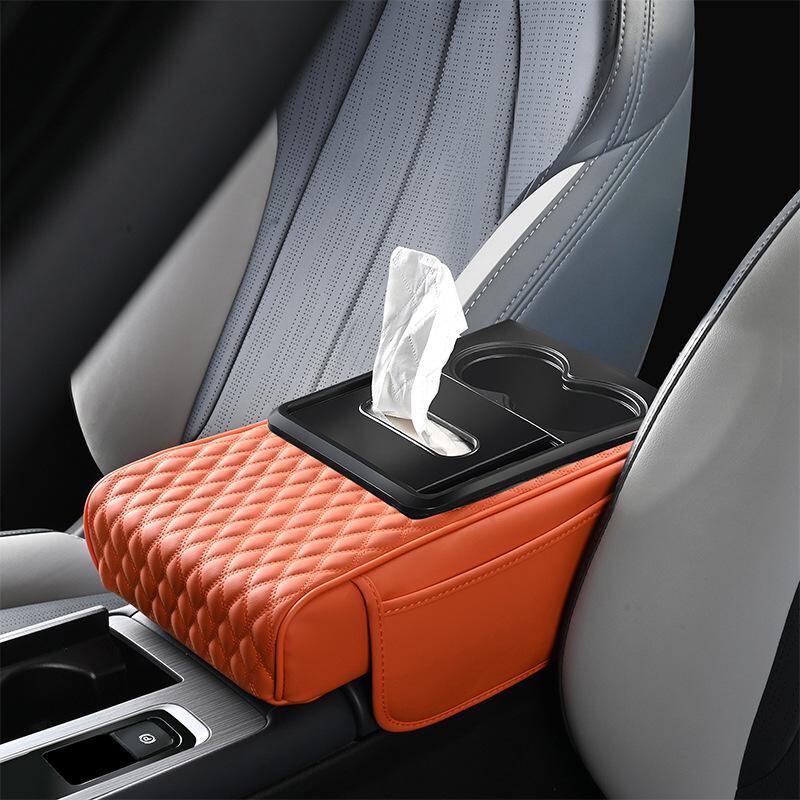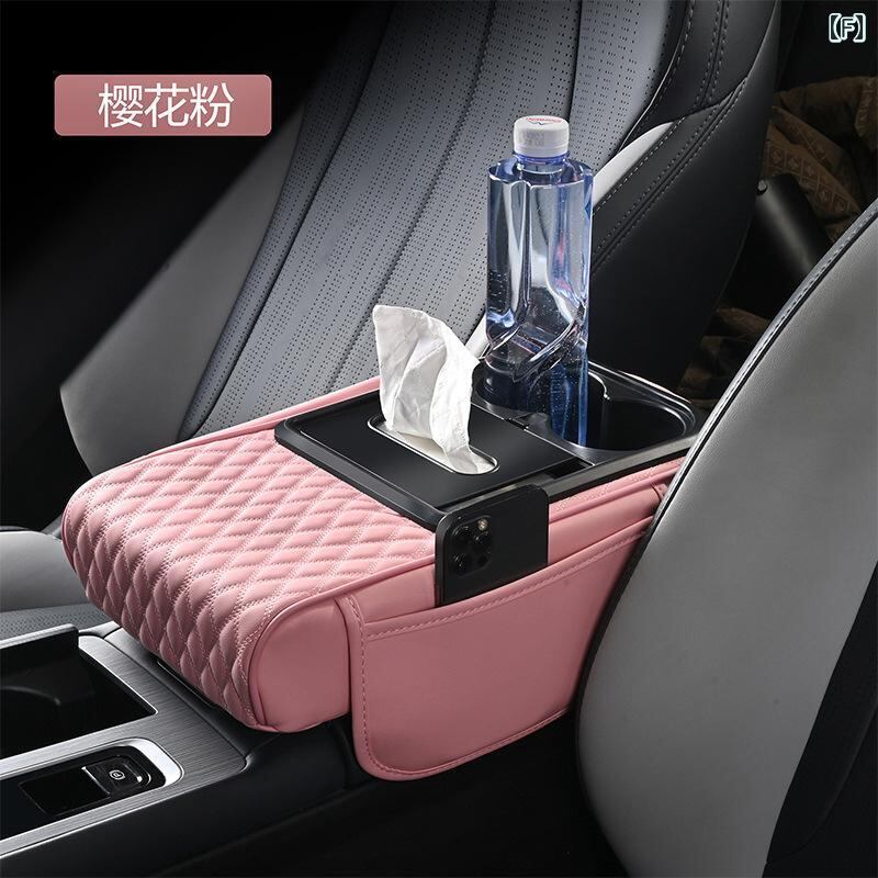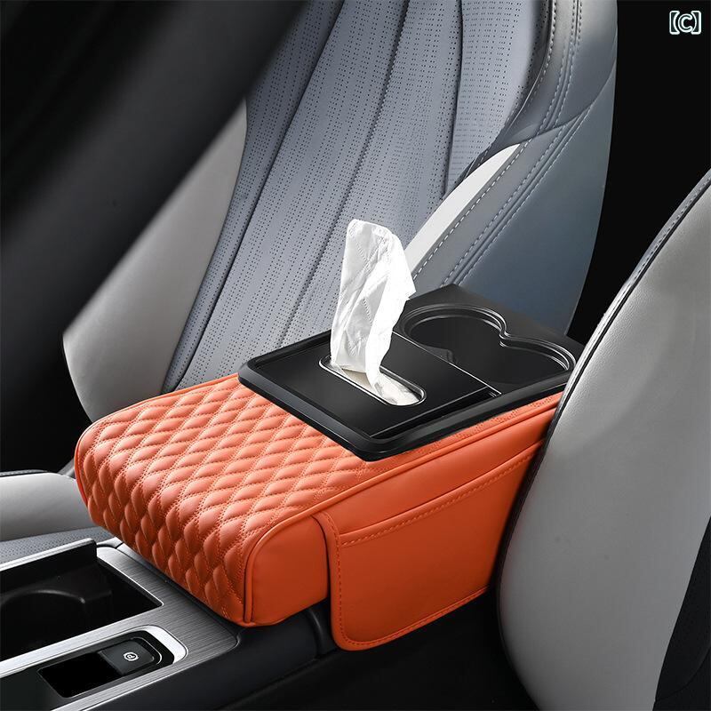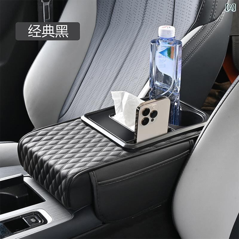 カー用品 車載アームレストボックス 高さ調節クッション 多機能 ティッシュケース 肘掛け 収納ボックス PUレザー スマホ収納 カード入れ ドリンクホルダー 運転快適グッズ 長距離運転 ドライブサポート | lanui