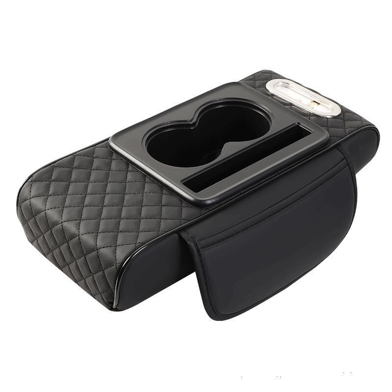 カー用品 車載アームレスト 高さ調整クッション センターコンソール 収納ボックス スマホホルダー 携帯スタンド ティッシュケース ドリンクホルダー カップホルダー 多機能 汎用 プラスチック製 | lanui