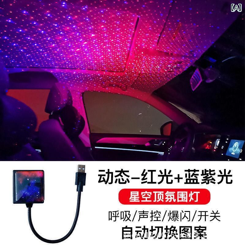 カー用品 星空プロジェクター 車内装飾 USB給電 音楽連動 アンビエント照明 ワイヤレス ムードランプ ダイナミック発光 多色点灯 ドライブ カスタム ドレスアップ 簡単設置 | lanui