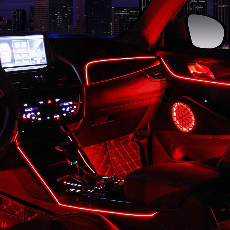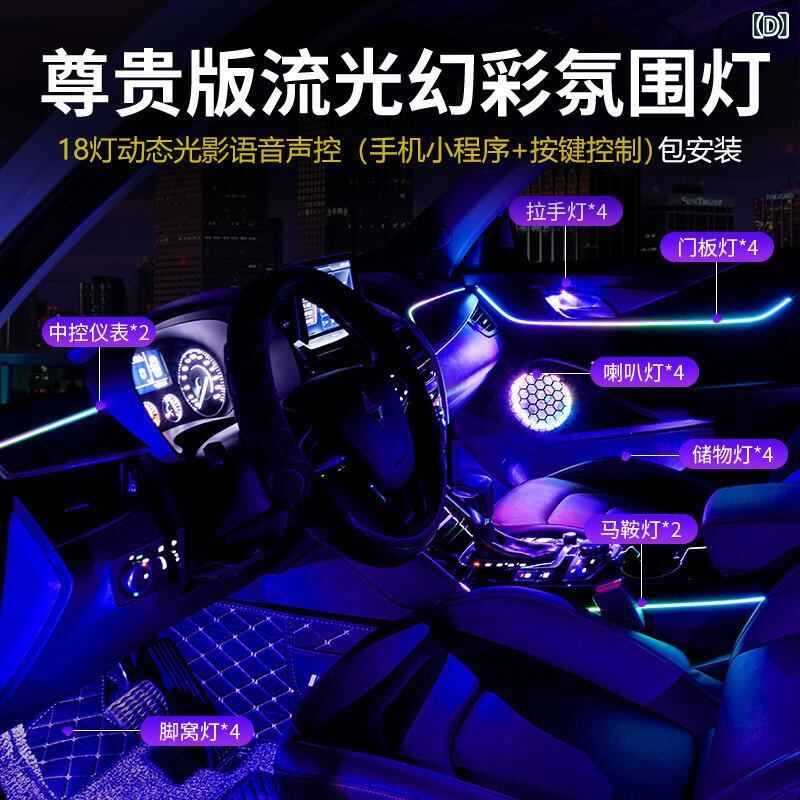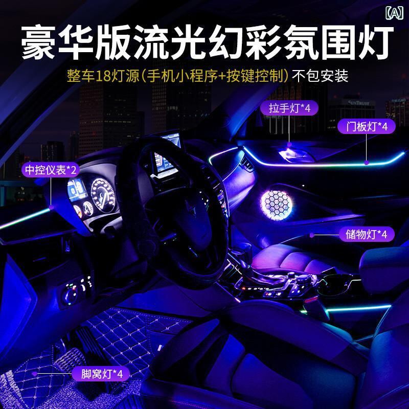 車内アンビエントライト 256色LED イルミネーション 多彩グラデーション 流れる光 ワイヤレス 音声コントロール 音楽連動 ダイナミック アクリル製 車載 カーカスタム ドレスアップパーツ | lanui
