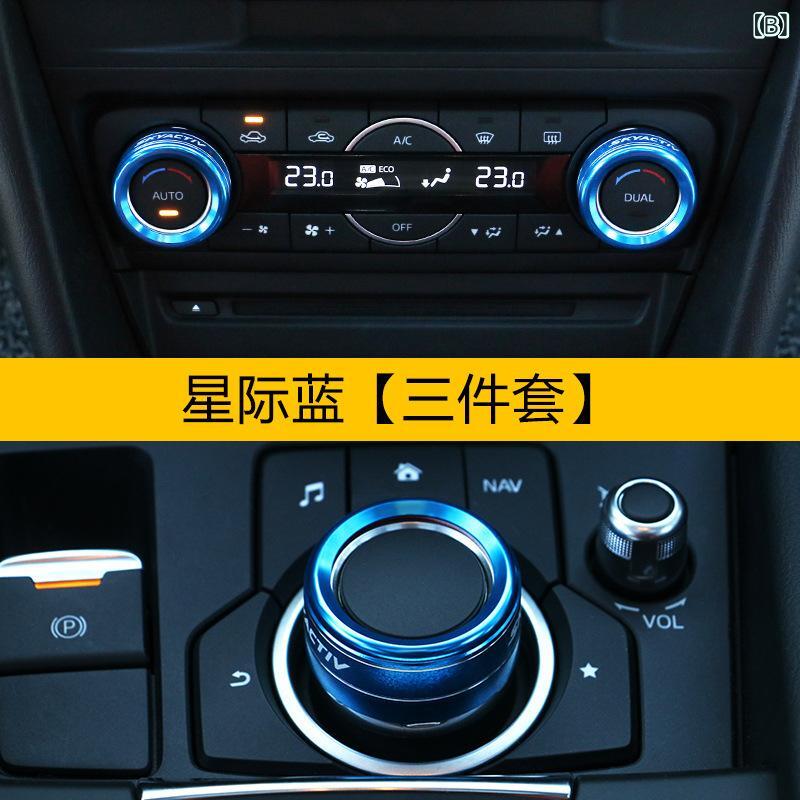 車用インテリアパーツ マツダ3 アクセラ アテンザ CX-4 CX-5 センターコンソール エアコン スイッチ ノブ カバー 飾り トリム リング ドレスアップ カスタム アルミ合金製 3点セット レッド ブルー ブラック | lanui