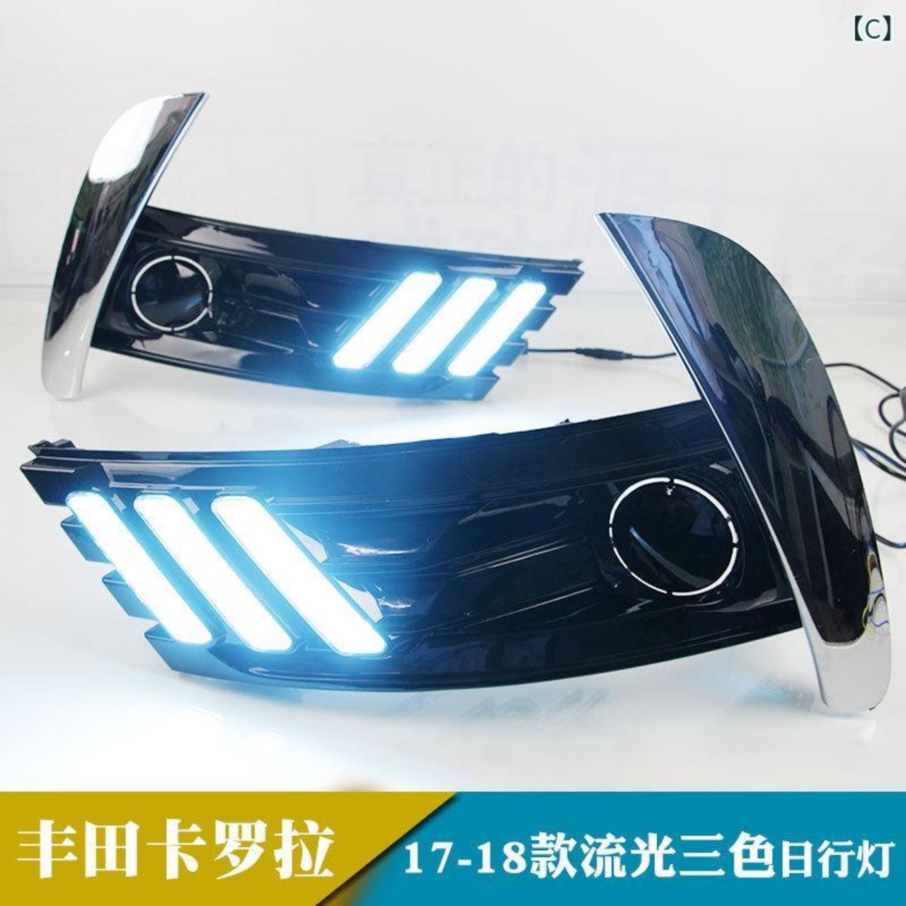LEDデイライト トヨタ カローラ 17-18年式 ウインカー フォグランプ ABS樹脂製 高輝度LED 電気メッキ加工 走行時白光 ターンシグナル黄光 夜間青光 カスタム ドレスアップ フロントランプ | lanui