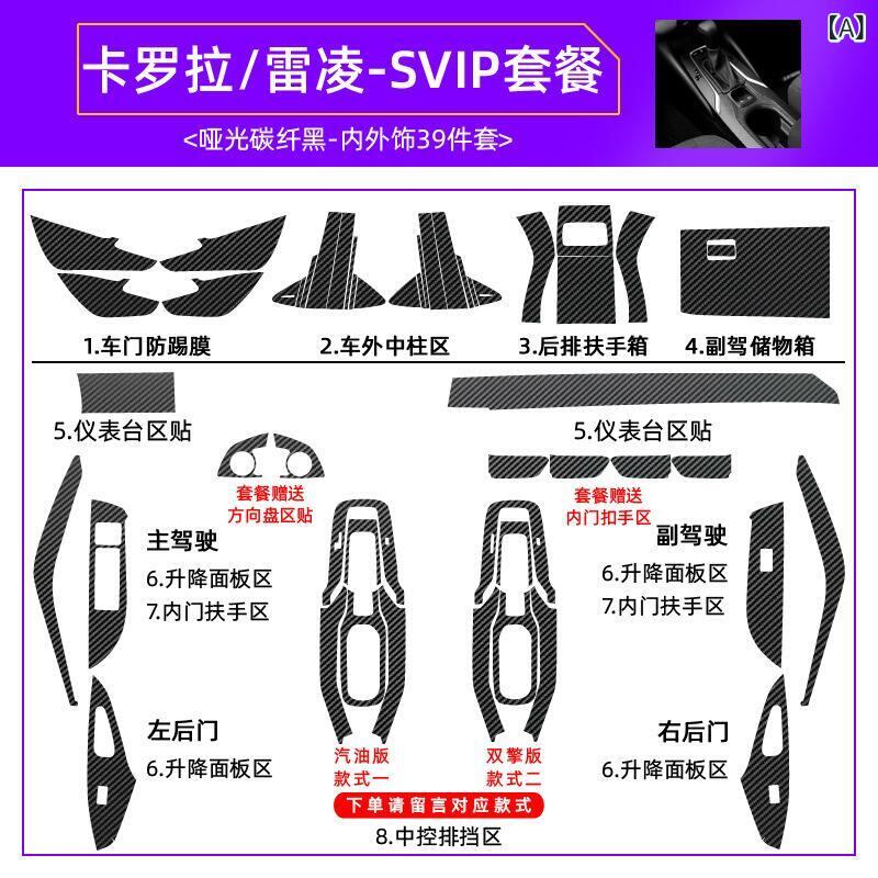 車用内装パネル ステッカー トヨタ カローラ レビン 19-21年式 専用 センターコンソール シフトパネル パワーウィンドウスイッチ カーボンファイバー 保護フィルム ドレスアップ カスタムパーツ 艶消しブラック | lanui