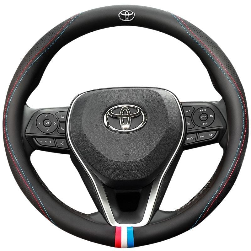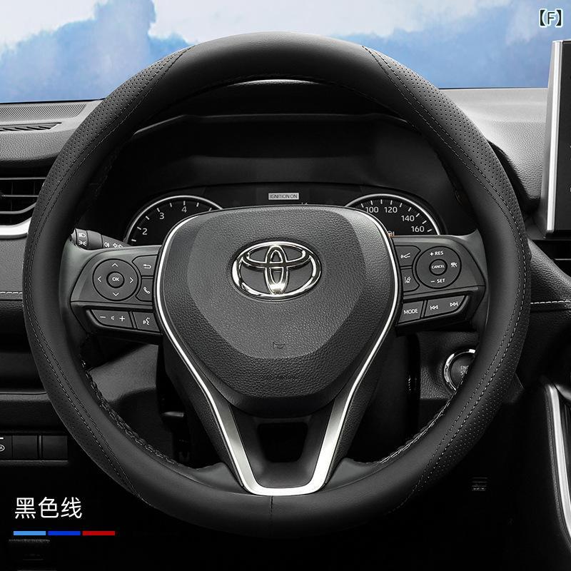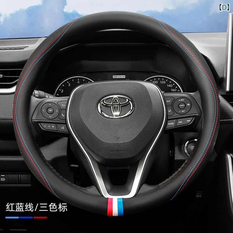 ハンドルカバー ステアリングカバー トヨタ車専用 ナッパレザー 超薄型 カローラクロス カローラ RAV4 カムリ ハイランダー スポーツデザイン グリップ 滑り止め 赤青ライン 黒 四季兼用 | lanui