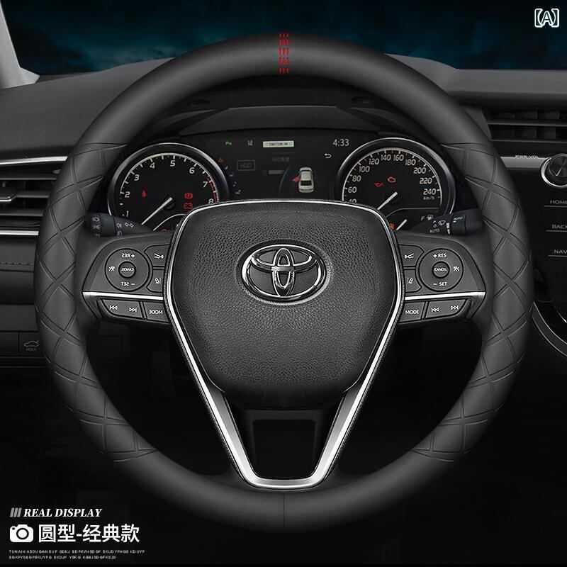 ハンドルカバー トヨタ車用 カローラ レイリン RAV4 イゾア CHR カムリ ハイランダー向け 合成皮革 レザー調 型押し 滑り止め 快適 38cm ステアリングカバー カー用品 ドレスアップ | lanui
