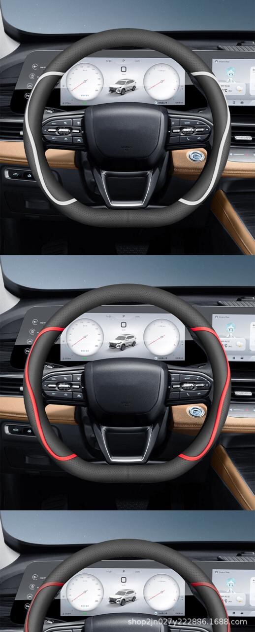 直径38cmのハンドルにぴったりフィットし、運転席を快適に彩ります。