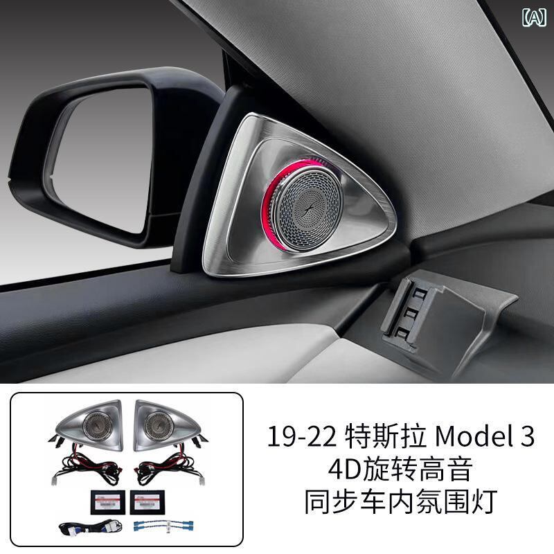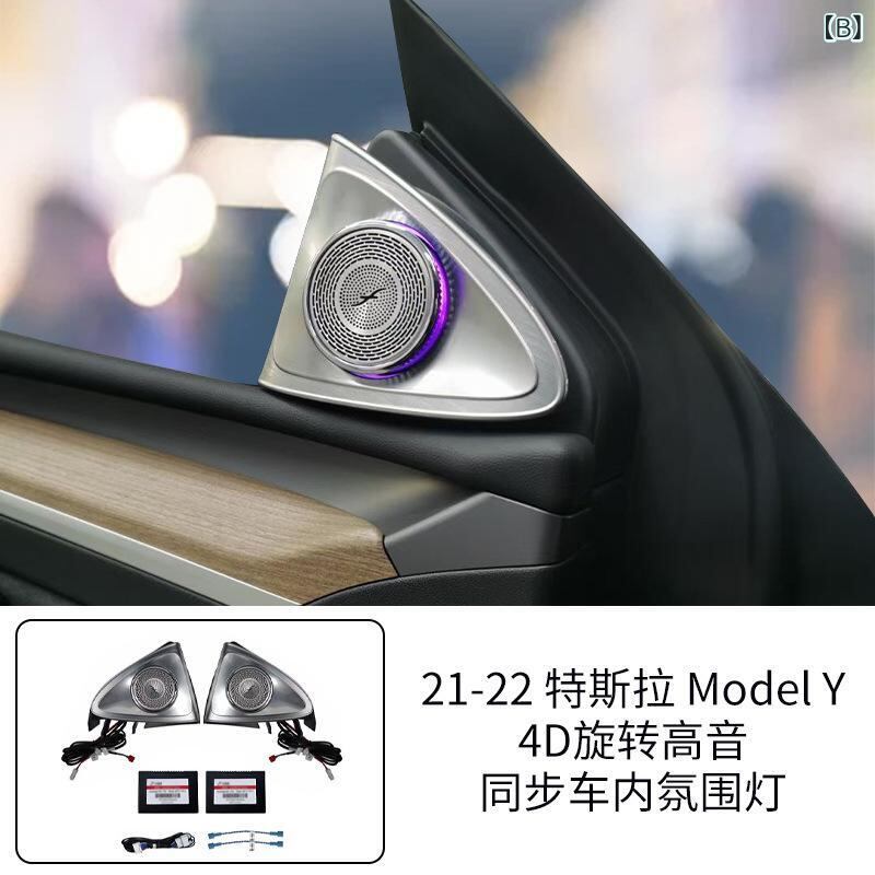 車載アクセサリー テスラ モデル3/Y 2019年以降対応 4D回転アンビエントライト ツイーターカバー LED メタル製 内装 イルミネーション 高級感 ドレスアップ カスタムパーツ | lanui