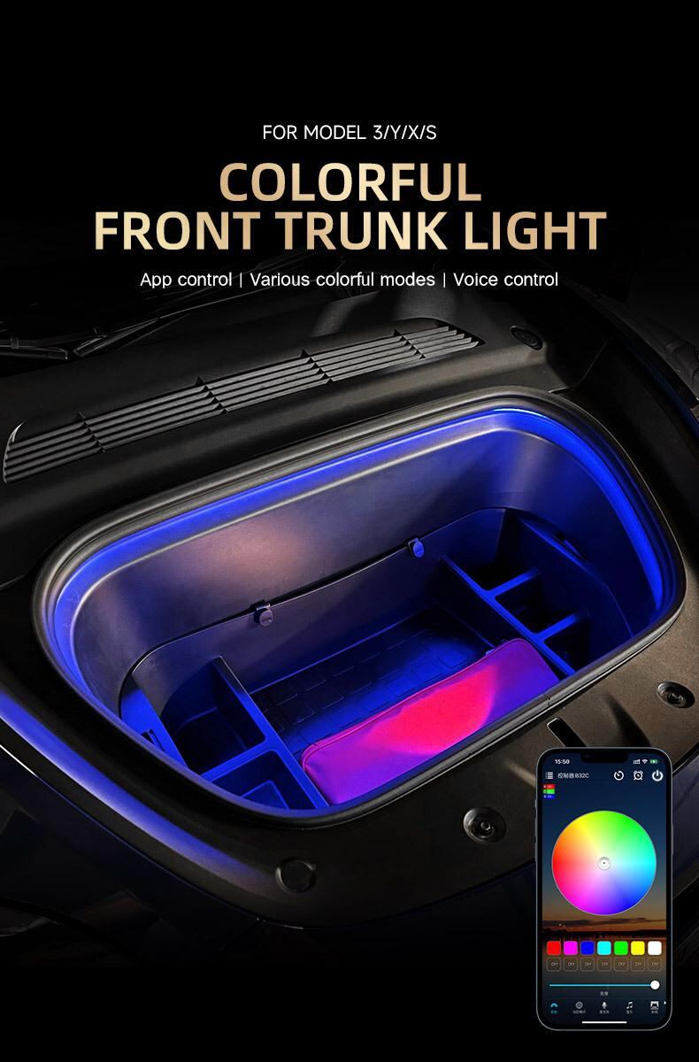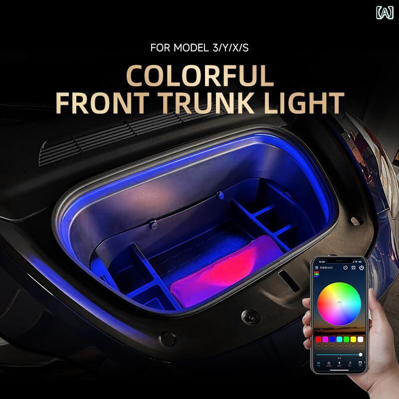 商品特徴・説明文: テスラ モデル3、Y、S、Xに対応したフロントトランク用LEDライトストリップです。スマートフォンアプリで簡単に操作でき、7色のカラー調整が可能なので、気分やシーンに合わせて車両の雰囲気を演出できます。愛車のフロントトランクを鮮やかに彩り、特別なカスタマイズをお楽しみください。