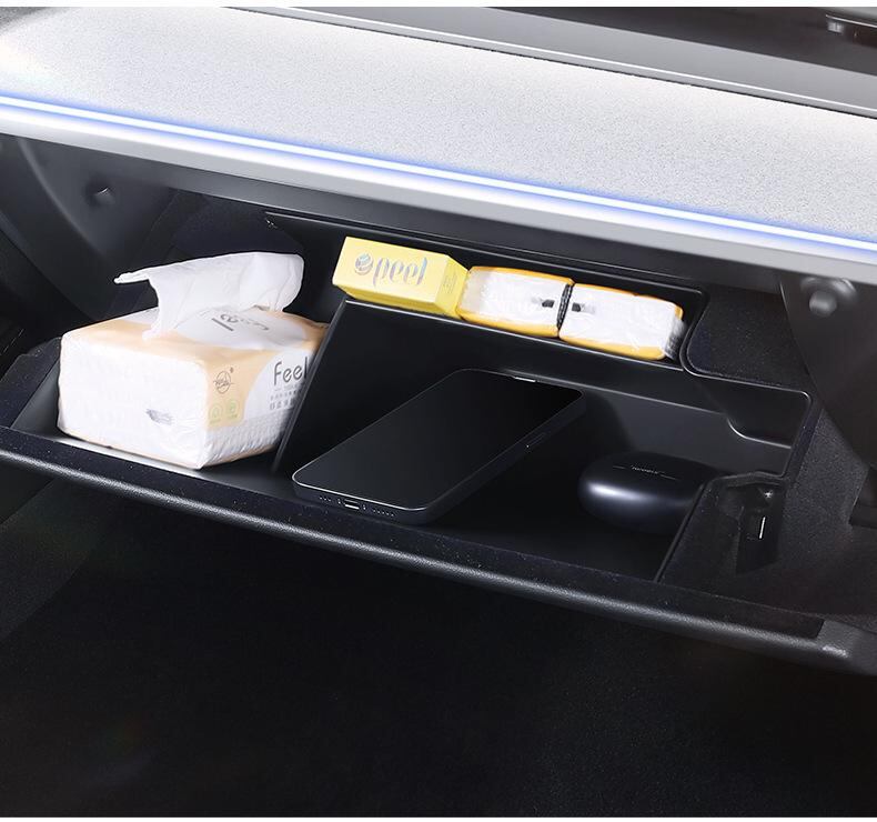 サイズ情報(参考): 具体的な寸法は記載されておりませんが、テスラ Model 3/Y/YLのグローブボックスにぴったり収まる設計です。
