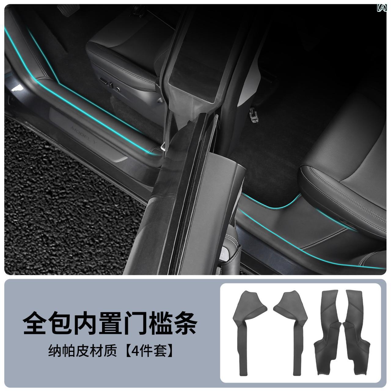 内装パーツ テスラ モデルY モデル3 新型 専用 ドアシル スカッフプレート 後部座席 キックガード プロテクター ブラック 傷防止 汚れ防止 フルカバー 車内保護 カスタム アクセサリー 簡単装着 | lanui